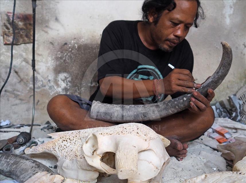 Ukiran seni dari kepala kerbau