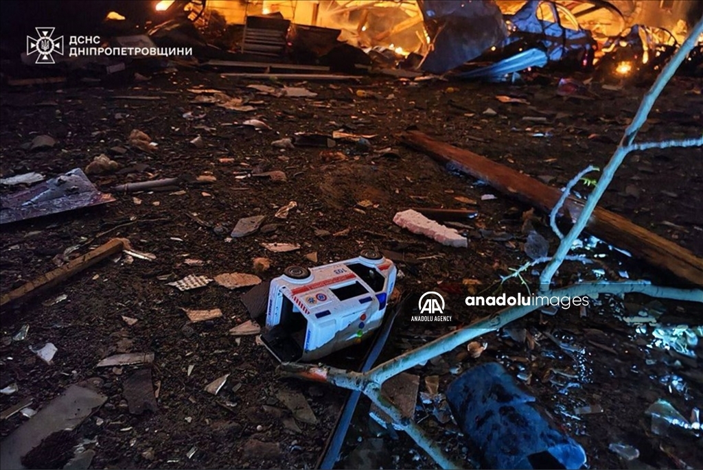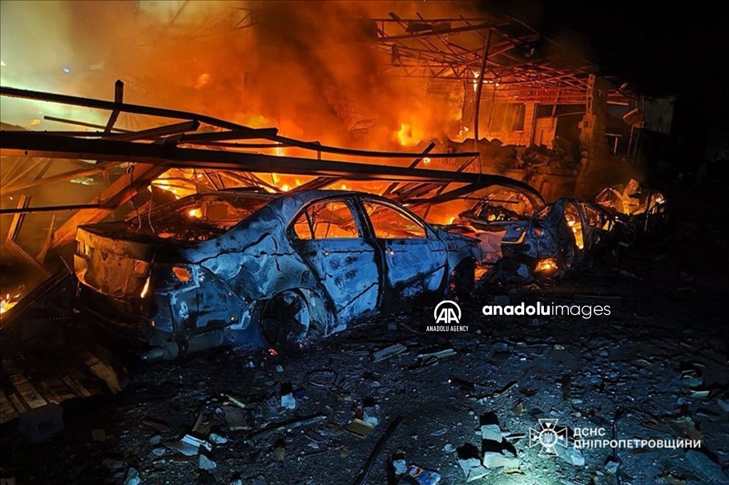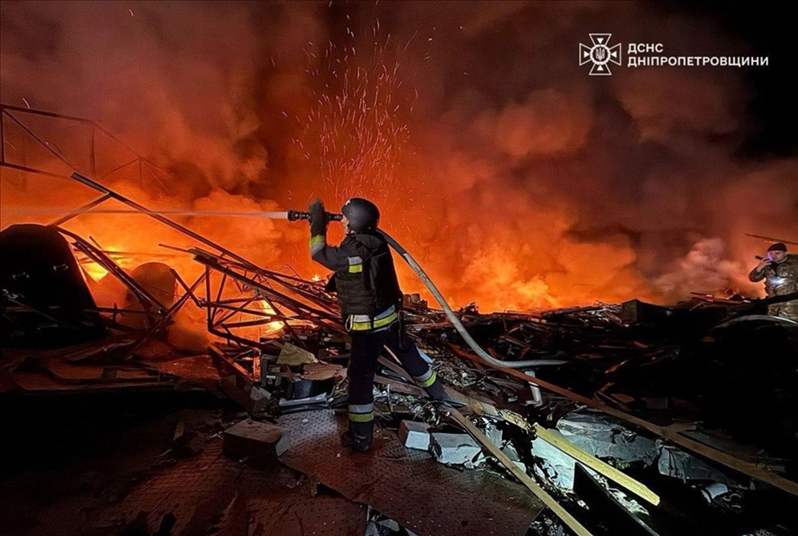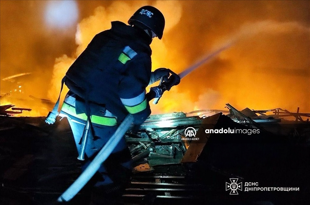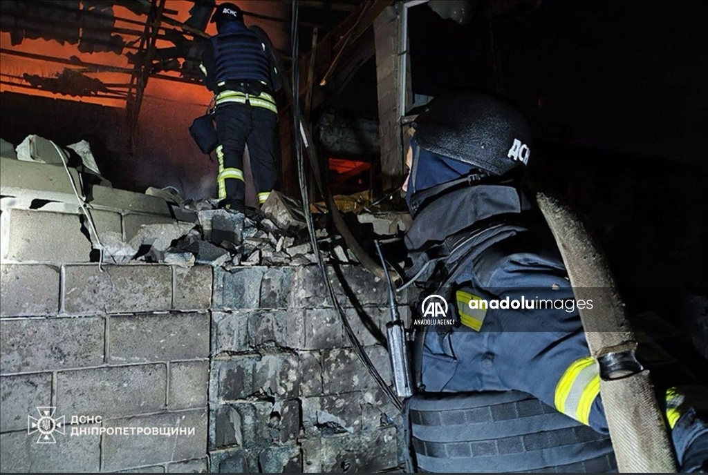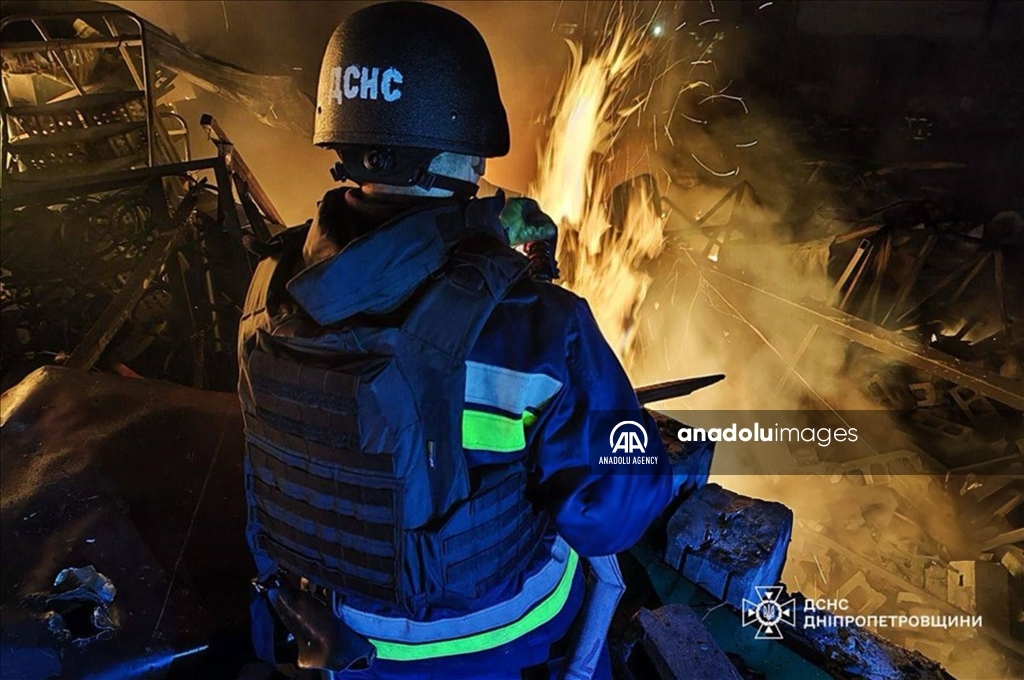 Upaya petugas padamkan api setelah serangan Rusia di kota Dnipro