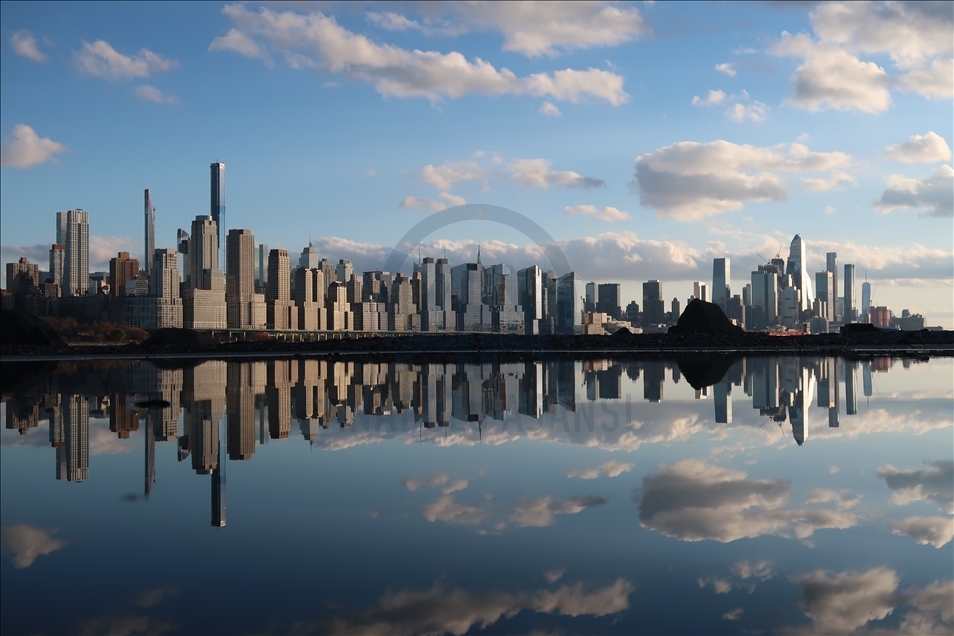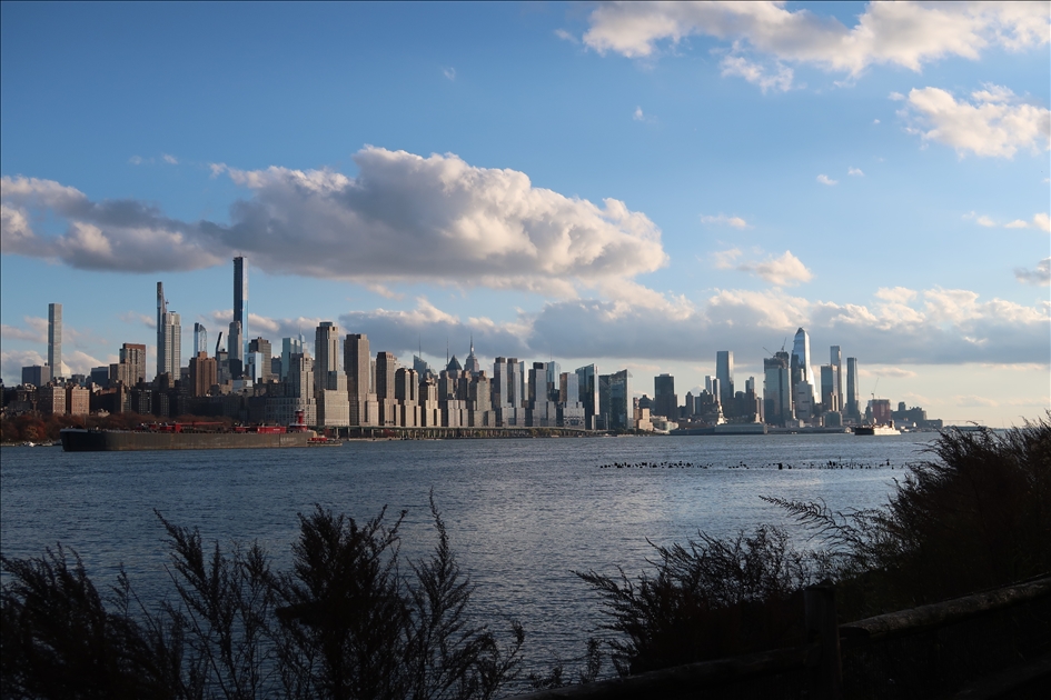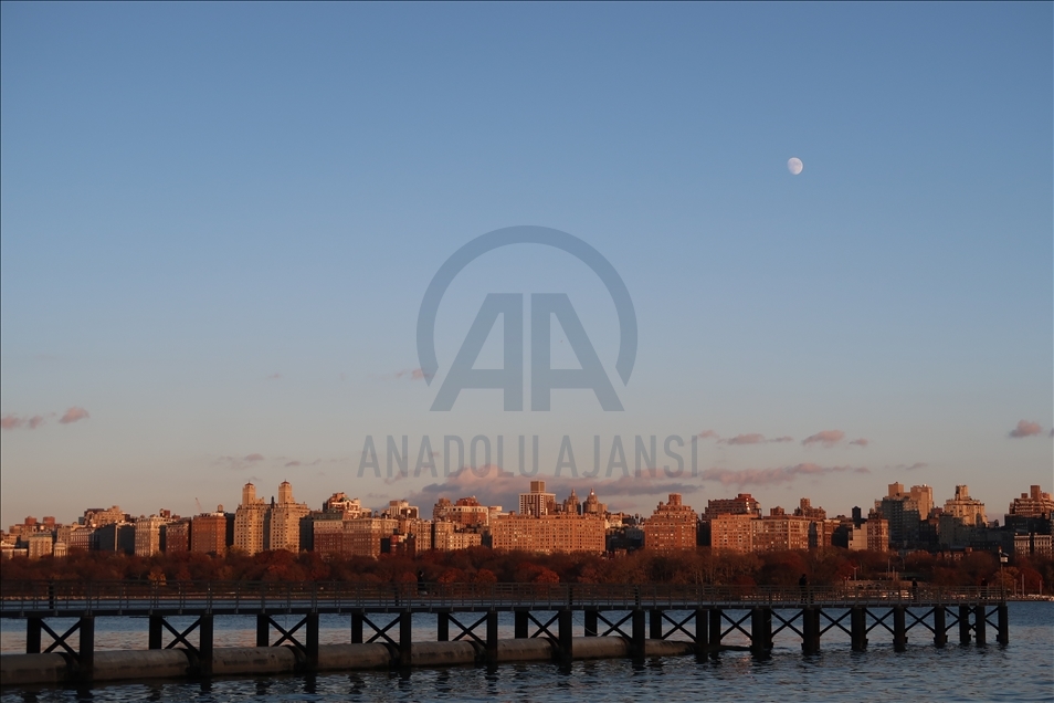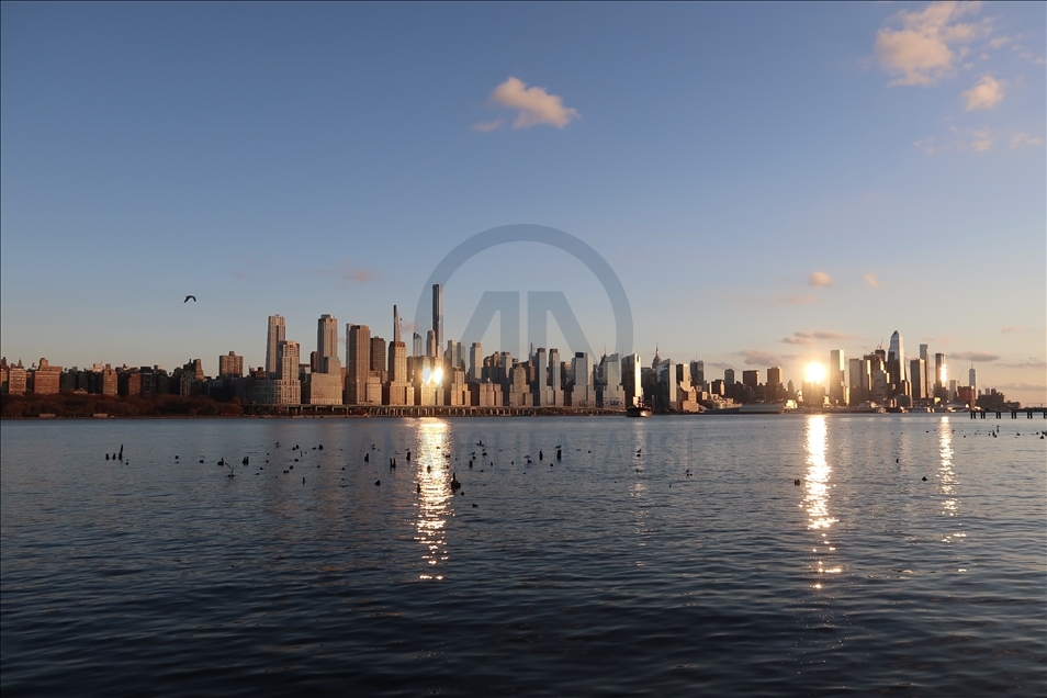 Pemandangan dari Sungai Hudson saat matahari terbenam di New York, AS pada 27 November.