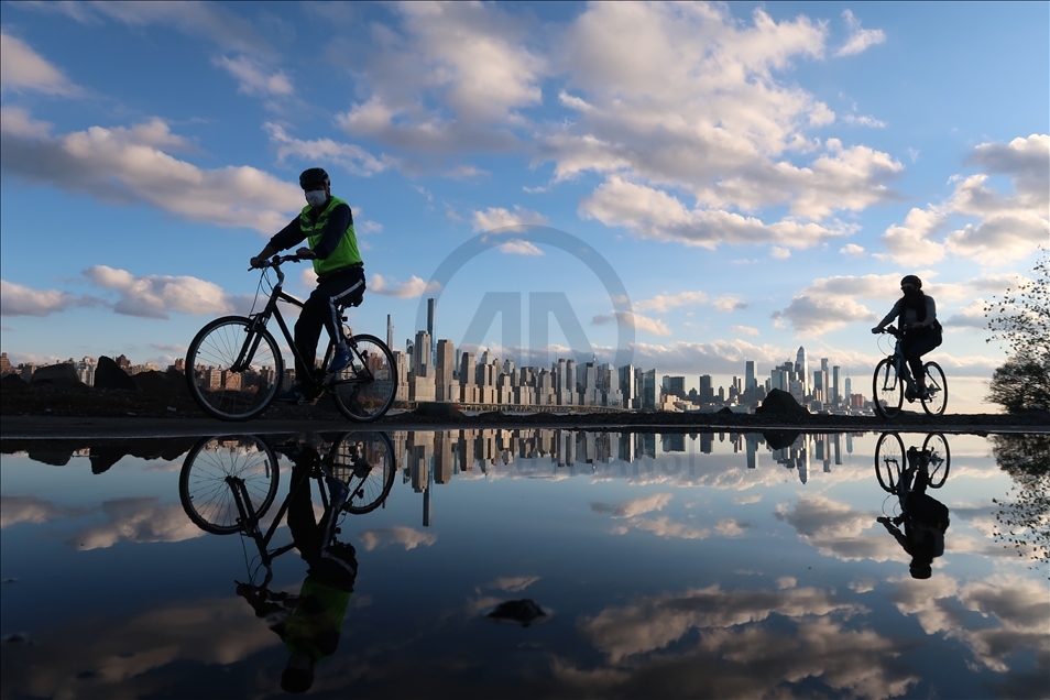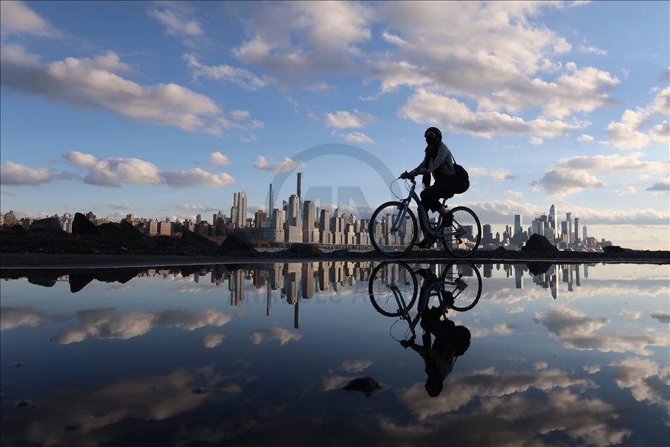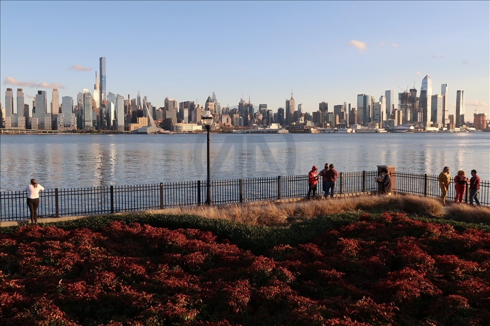 Warga menikmati cuaca yang pemandangan indah dari Sungai Hudson saat matahari terbenam di New York, AS pada 27 November.