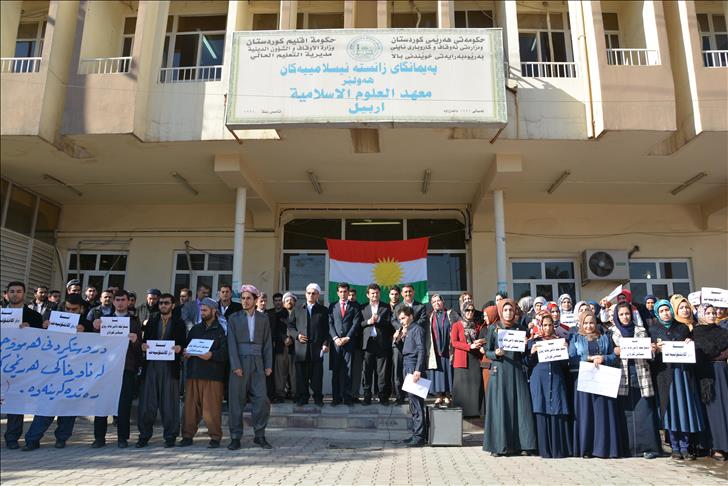 Ji Enstîtuya Zanistên Îslamî ya Hewlêrê komek xwendekar û hîndekarî xwepêşandan li dar xist û bi pankart û dirûşmeyên wekî "ji kantonan re na" li hember teşebûsa navborî bertek nîşan da.