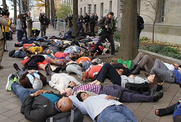 Çalakvan heta Qada Tîmêsê meşiyan û xwestin ku li ser kolana Manhattanê rê ji hatin û çûyînê re bigrin. Polês destûr neda û hin çalakvan hatin binçavkirin. Di nav wan de welatiyekî Tirkiyeyê Olcay Şaşan û rojnamevanek jî heye.