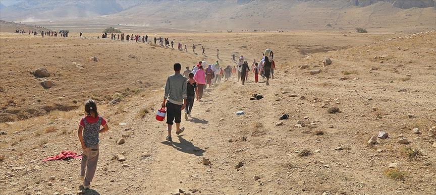 Carinan li hin cihên rêya biewle, di navbera milîtanên DÎŞI, pêşmerge û hêzên YPGyê de şerên dijwar diqewimin. Di êrîşên ku DÎŞIyê bi topên hawanê dike de hin kes dimrin û hin jî birîndar dibin. Kesên ku sax digihêjin Geliyê Kerzeyê, ji vir jî ber bi rêdera biewle ya gelî ve dimeşin. Meşa ku ji ser axa Iraqê dest pê dike nêzî 5 saetan didome. Lê belê ev rêwîtî ji bo êzdiyên ku bi rojan tî û birçî man û nikarin bimeşin bi zor û zehmet e.