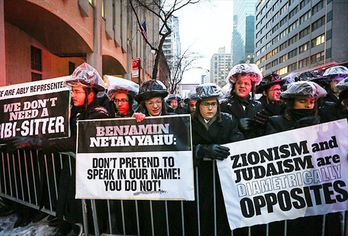 Li New Yorkê Cihûyên Hasîdîk dema Serokwezîrê Îsraîlê Binyamîn Netanyahu di Kongreya DYAyê de axivî ew protesto kirin.