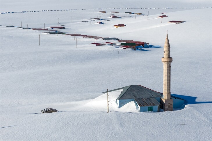 Li deverên bilind ên Erdexanê xaniyên li zozanan ên ku bi tesîra sir û sermayê heya baniyan di bin berfê da mane, bi dronê hatin kişandin