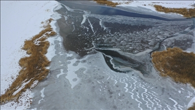 Li Sariqamîşa navçeya Qersû ji ber hewaya sar camên wesayîtan cemed girt û xwîsiyê avêt ser giyayan.