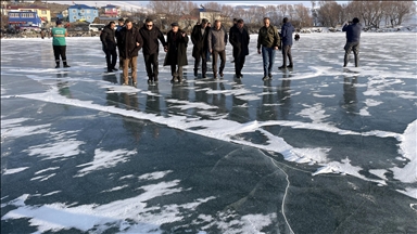 Li Agiriyê ji ber sermayê Çemê Muradê û hin çemên din qeşa girt.