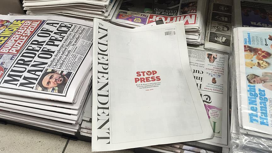 The Independenta rojnameya sereke ya Îngiltereyê îro cara dawîn hat çapkirin.