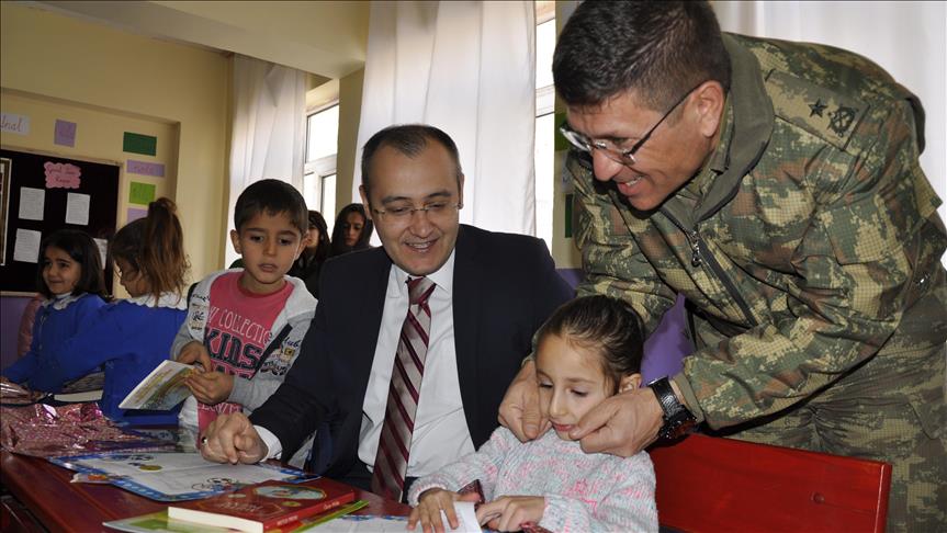 Fermandarê Parleşkera Asayî ya Cendermeyan a Wanê Korgeneral Arîf Çetîn û Fermandarê Lîvaya Hidûdê 2yemîn Tuggeneral Bahtiyar Ersay li Hekariyê qarne dan zarokan.
