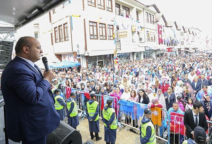 Akdogan li Beypazariyê beşdarî vebûna komî bû li vir axivî. Akdogan got ku 55 sal berê, îro midaxaleyî desthilatdariya ku gel hilbijartibû kirin û di 27ê gulanê de serokwezîrê ku gel hilbijartibû îdam kirin.