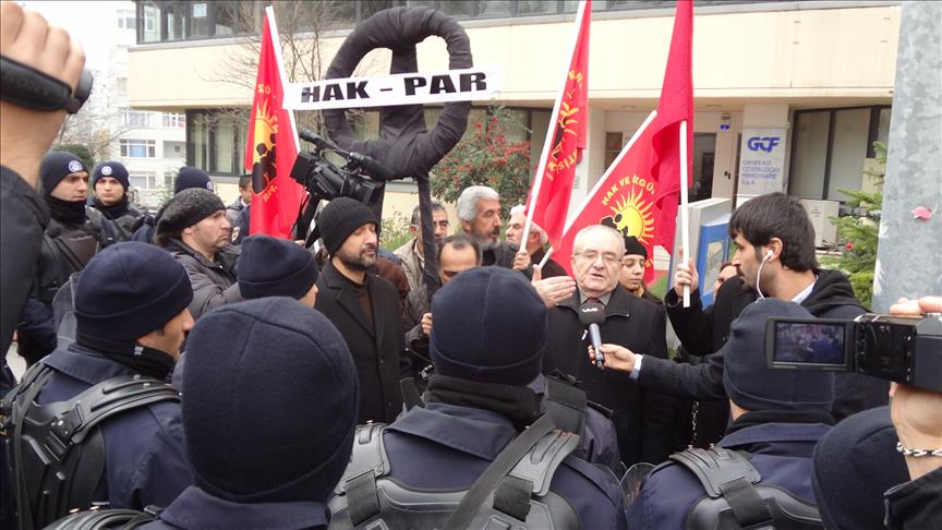 Endamên HAK-Parê li ber derê Balyozxaneya Ankarayê ya Îranê kom bûn û ji ber ku polêsan xwest ku li ber derê balyozxaneyê daxuyanî nedin û biçin li nav kûçeyên navîn daxuyanî bidin, daxuyanî neda.