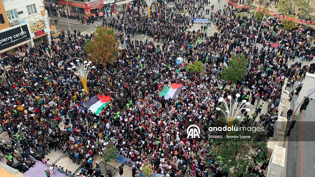 Welatiyên ku pankarta "Heta Filîstîn azad bibe wê têkoşîna me bidome" hilgirtin, bi qîrîna diruşman heta ber Navenda Bazirganiyê ya Yaşamê meşiyan.