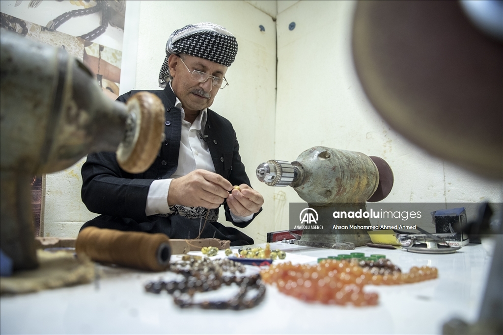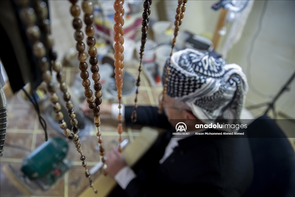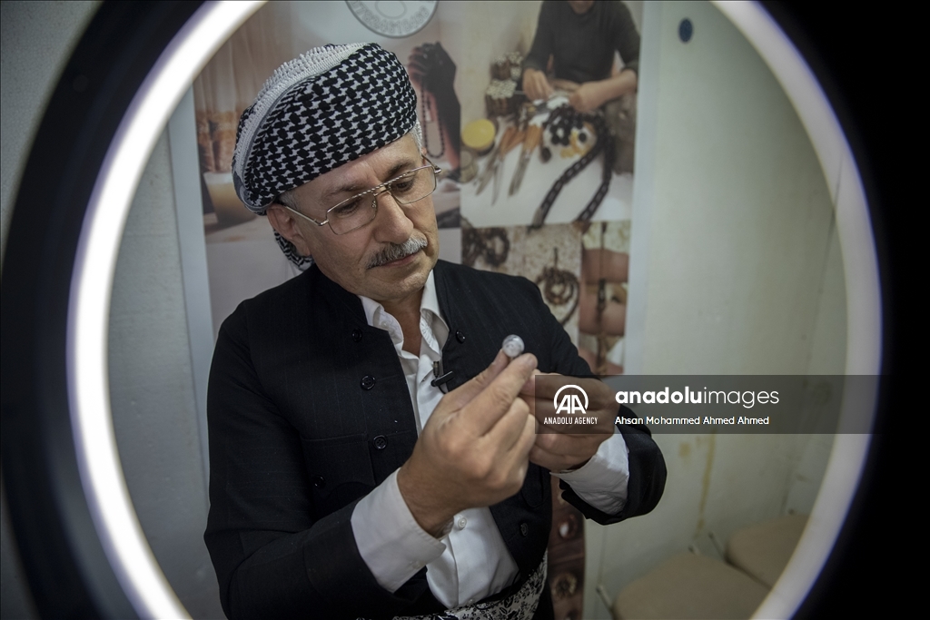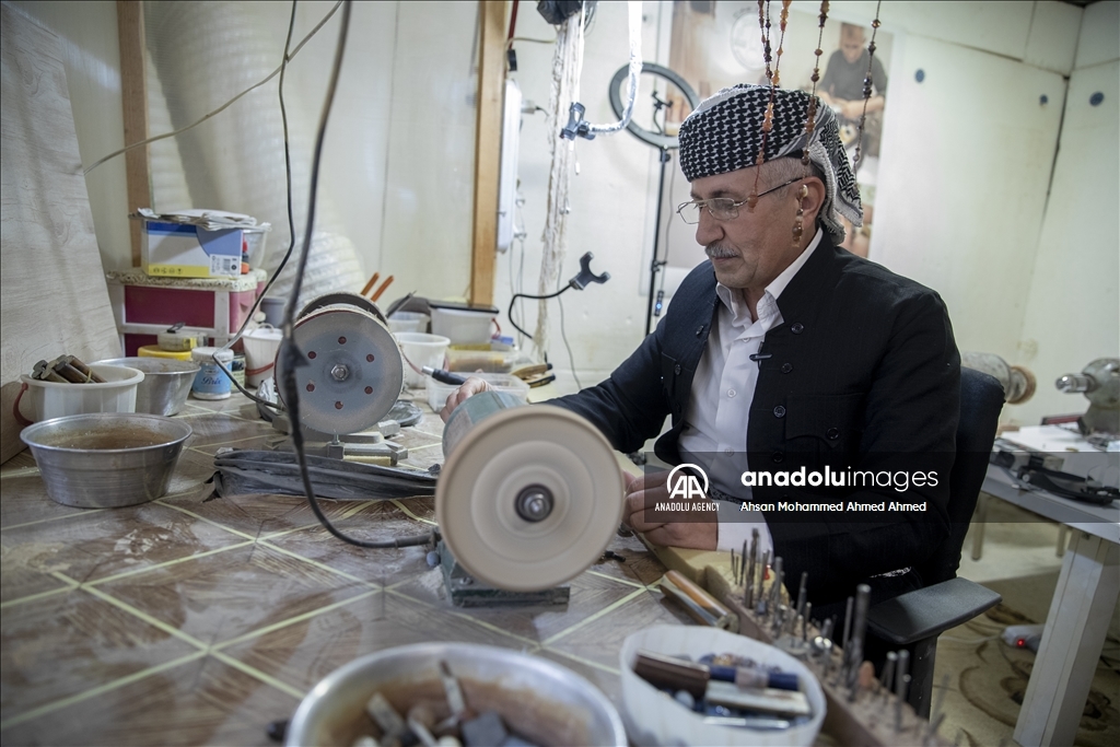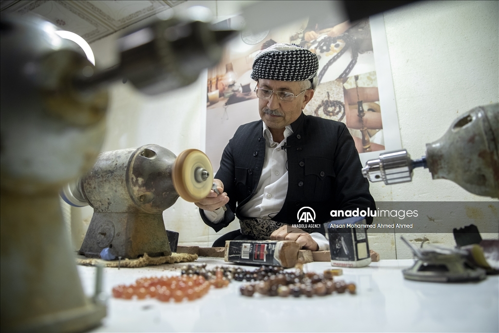 فەرهاد چەراخ، دانیشتووی کۆمەڵگای مەلائۆمەر سەربە پارێزگای هەولێر، ماوەی هەشت ساڵە خەریکی دروستکردنی تەسبیحە، ئەو لە ژوورێکی نهۆمی سەرەوەی ماڵەکەی، چەندین ئامێری تایبەت بە بڕین و کونکردنی دەنکەکان و درەوشانەوەی دەنکەکان هەیە و رۆژانە بە تاشینی بەرد و ماددە گرانبەھاکان سەرقاڵی دروستکردنی تەسبیحە.