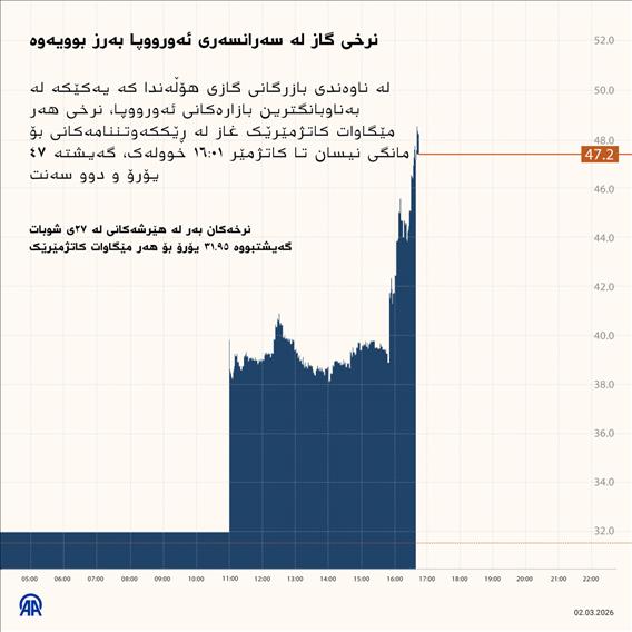 نرخی گاز لە سەرانسەری ئەورووپا بەرز بوویەوە