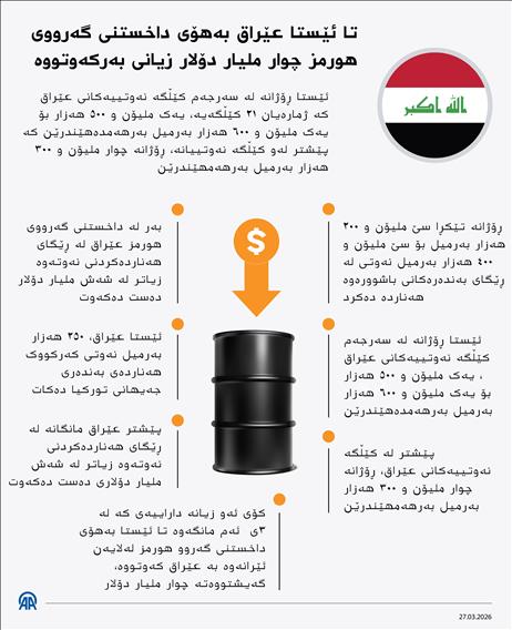 تا ئێستا عێڕاق بەھۆی داخستنی گەرووی ھورمز چوار ملیار دۆلار زیانی بەرکەوتووە