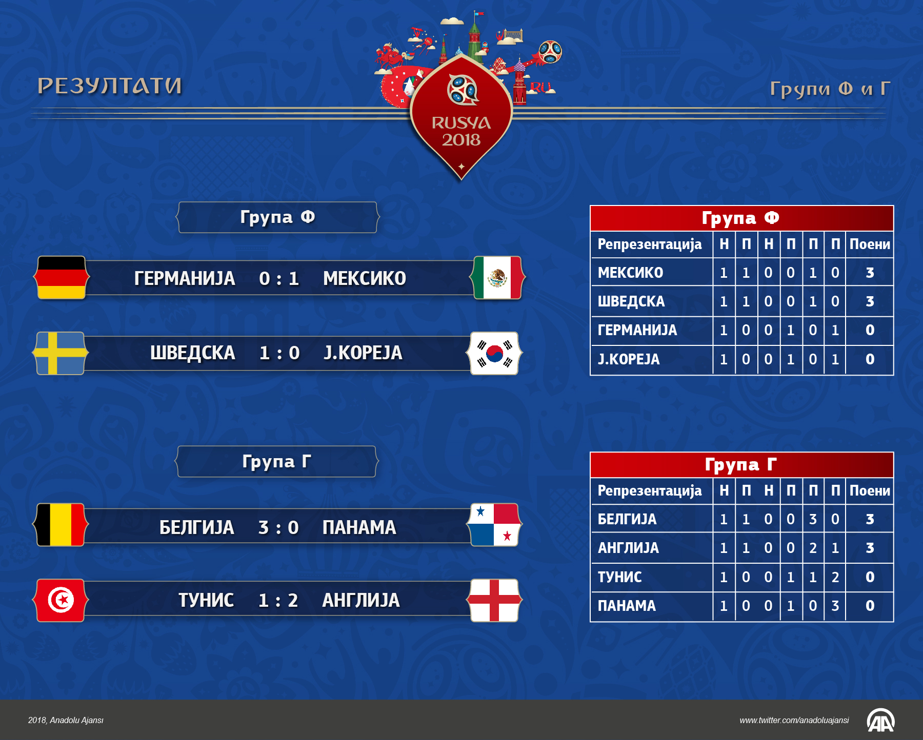 Резултати од напреварите на петтиот ден на СП Русија 2018
