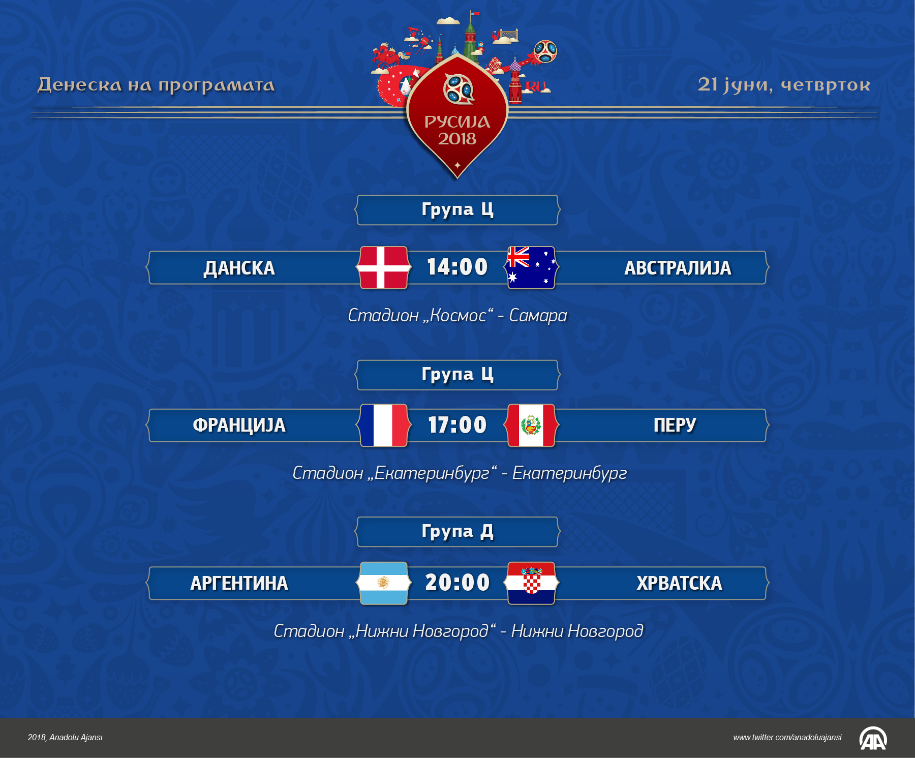 СП Русија 2018: Денеска на програмата - 21 јуни, четгврток