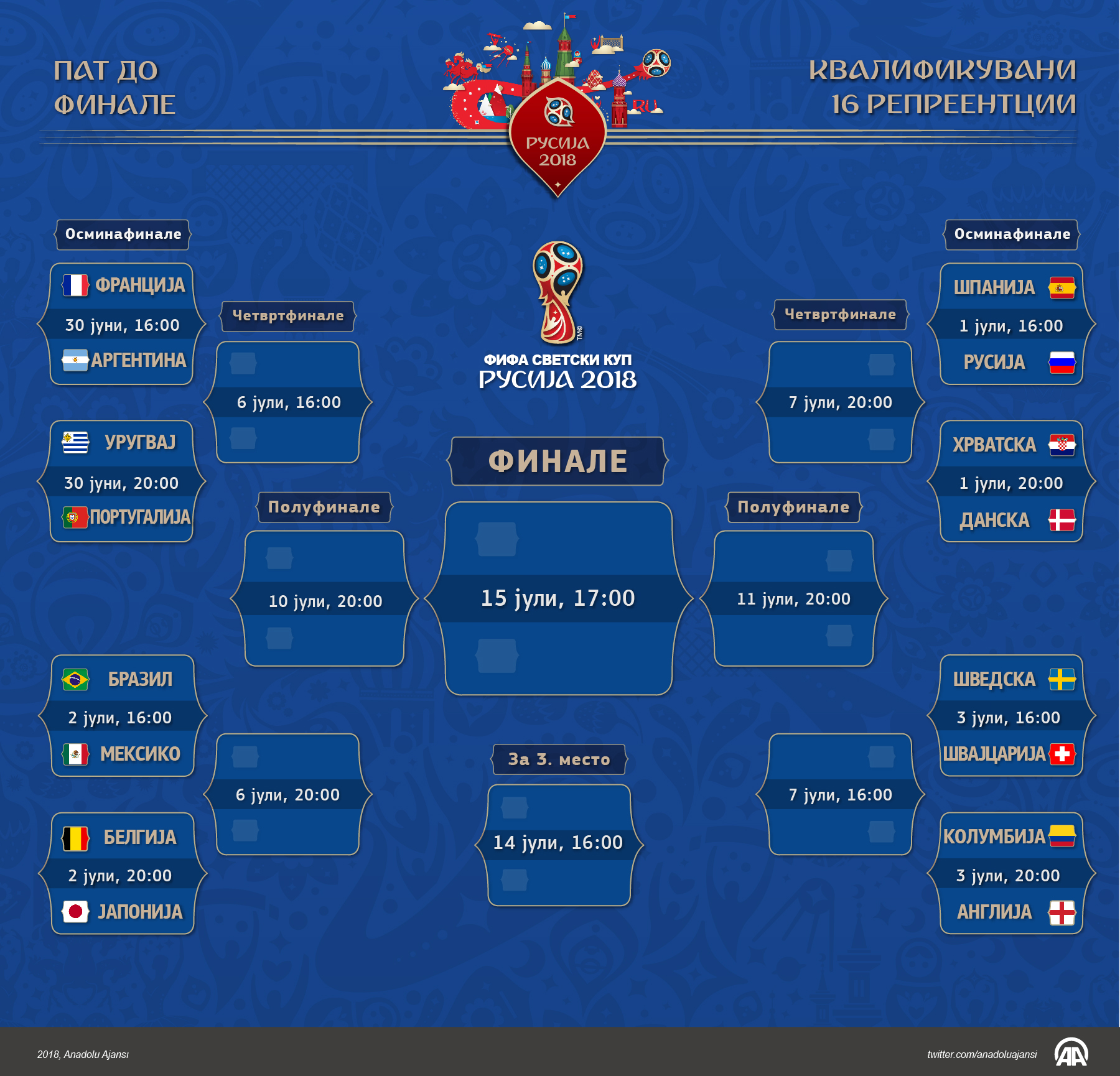 Започнува возбудата со осминафиналните натпревари во СП Русија 2018