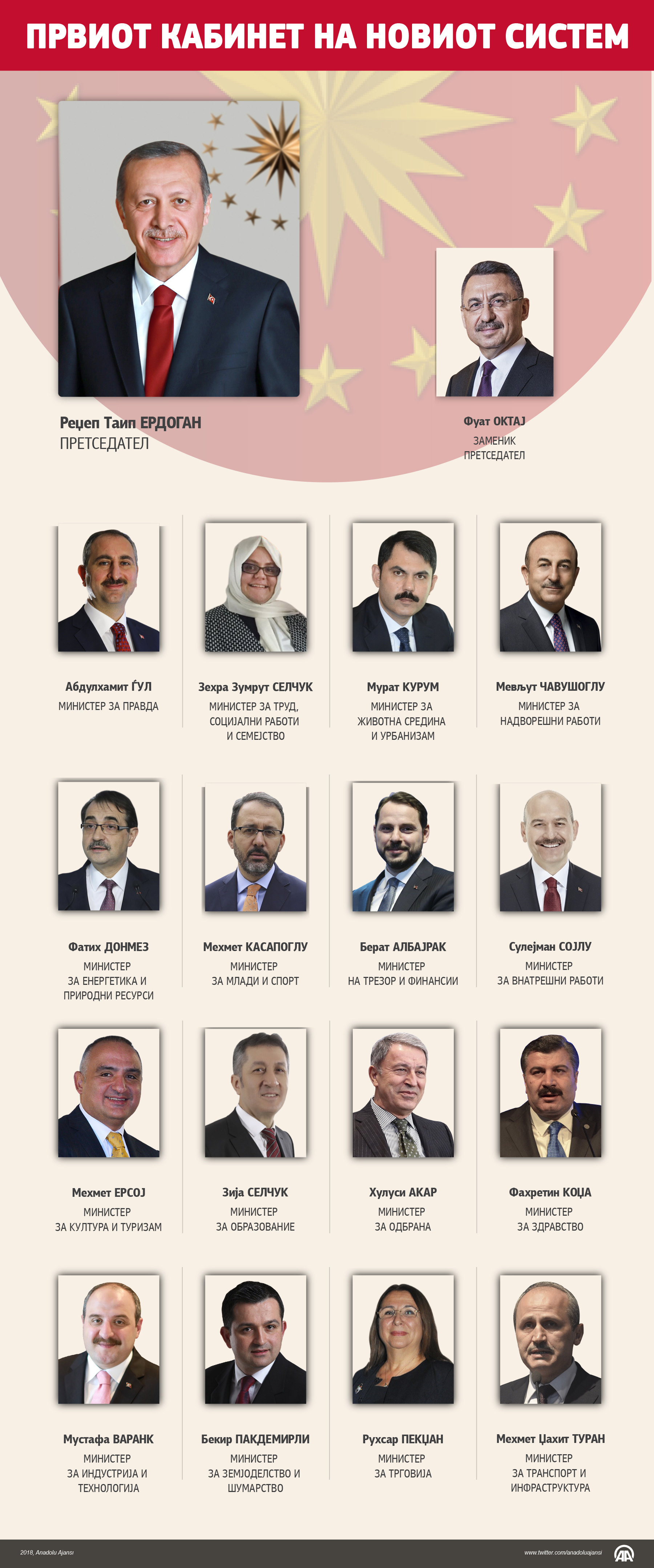 Реџеп Таип Ердоган кој е првиот претседател на претседателскиот систем на владеење во Турција, го објави првиот кабинет на новиот систем на управување во Турција10 Јули 2018•Ажурирај: 10 Јули 2018