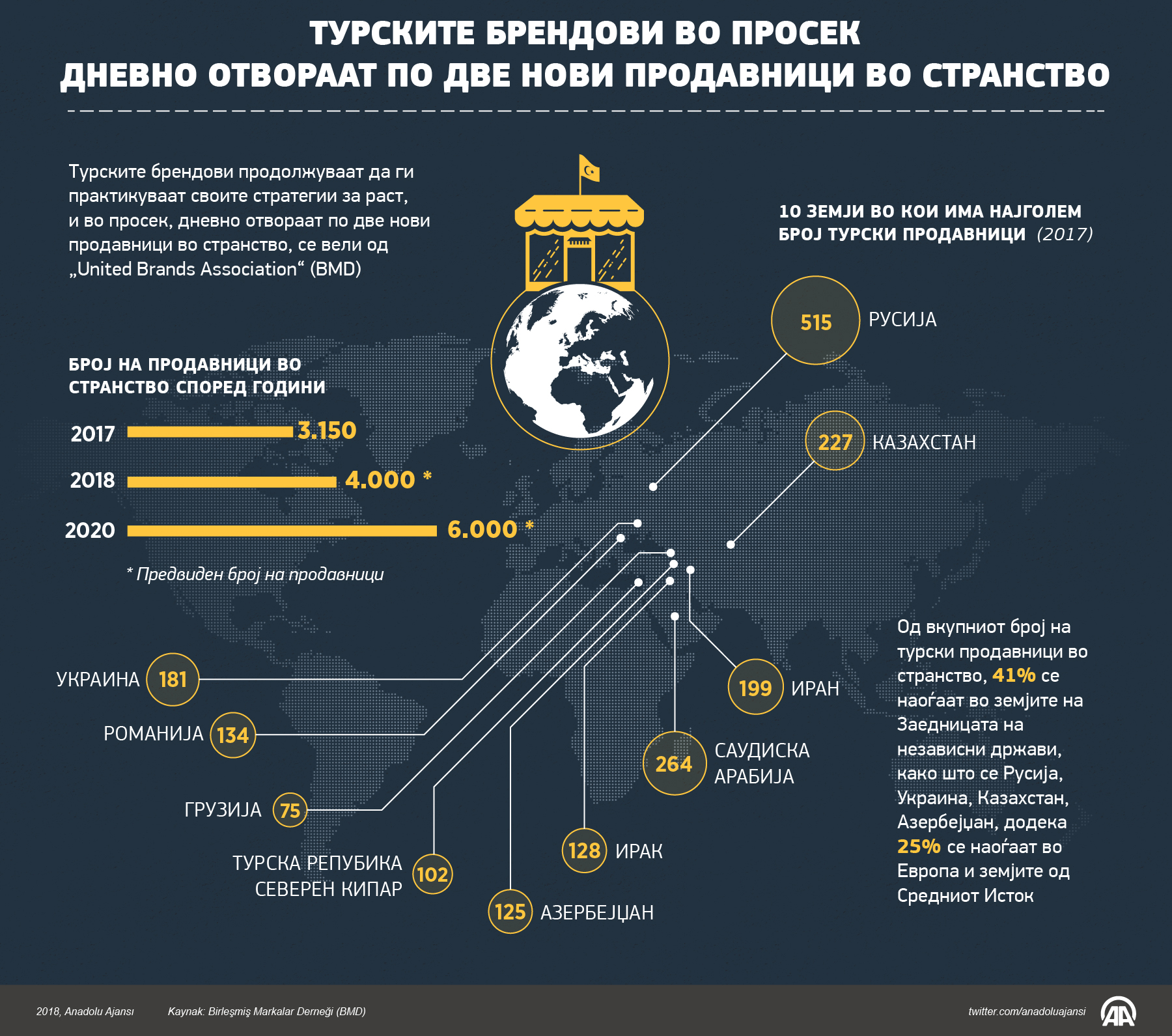 „Вкупно 108 турски брендови во странство од почетокот на 2018 година имаат 3.150 продавници, а се очекува дека оваа бројка ќе достигне околу 4.000 до крајот на годината, и 6.000 до 2020 година“