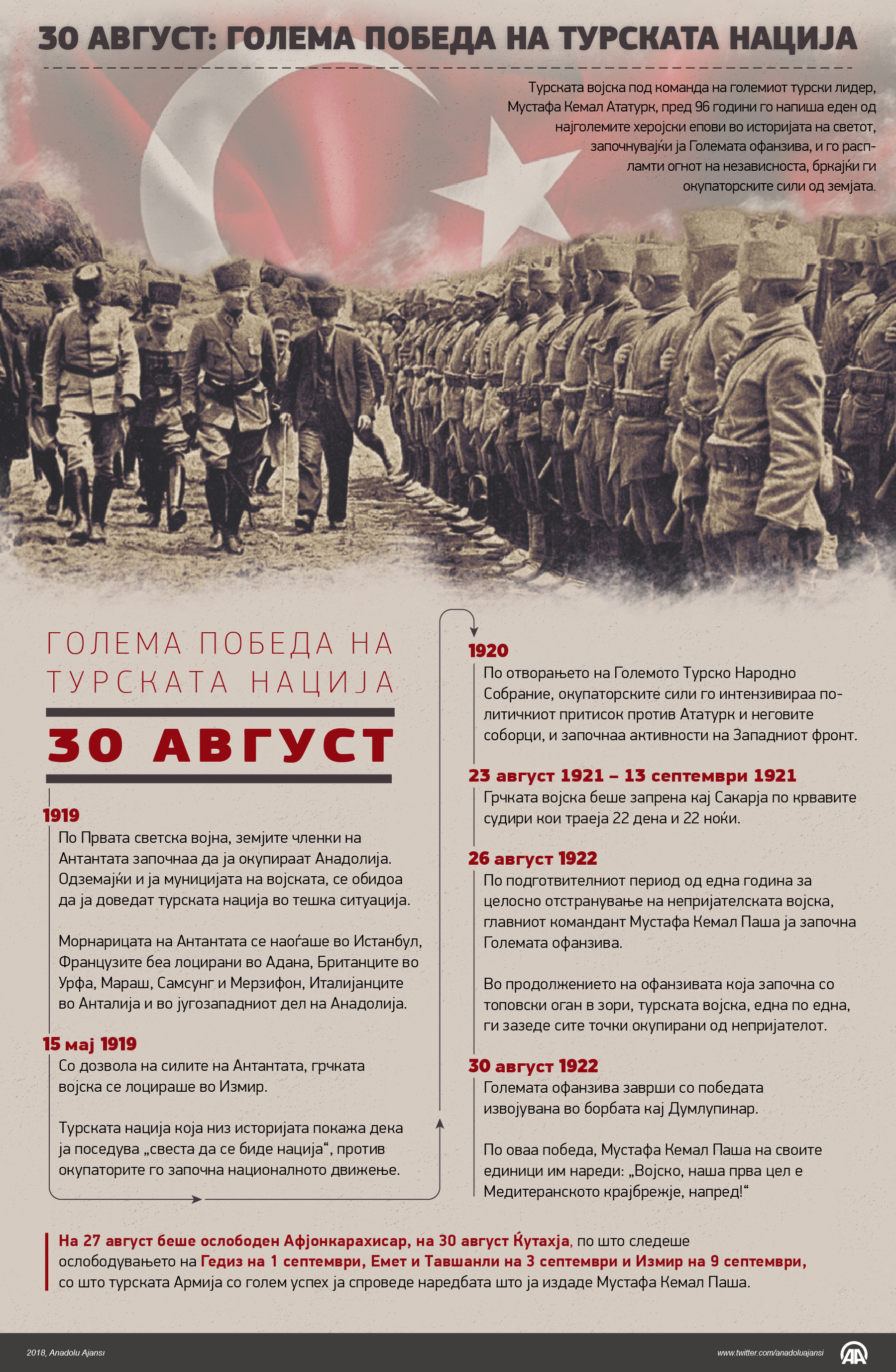 Со голем број церемонии и програми низ цела Турција и во сите турски претставништва во странство, се прославува 96-годишнината од Денот на победата, 30 Август30 Август 2018•Ажурирај: 30 Август 2018