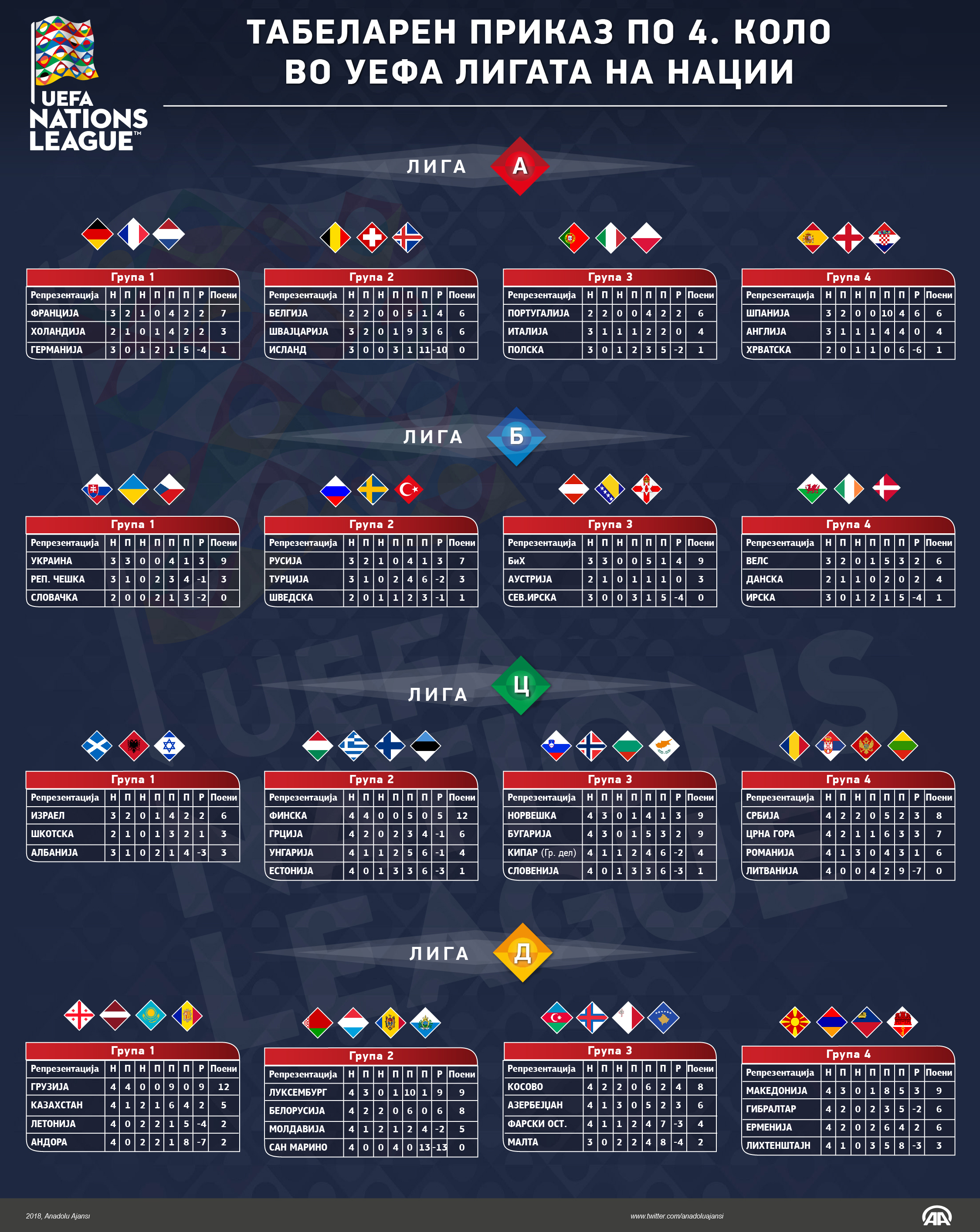 Табеларен приказ по 4. коло во УЕФА Лигата на нации