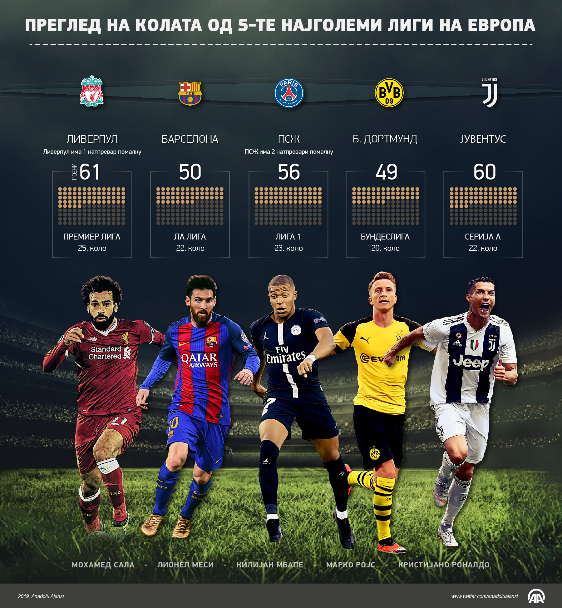 Преглед на колата од 5-те најголеми фудбалски лиги на Европа