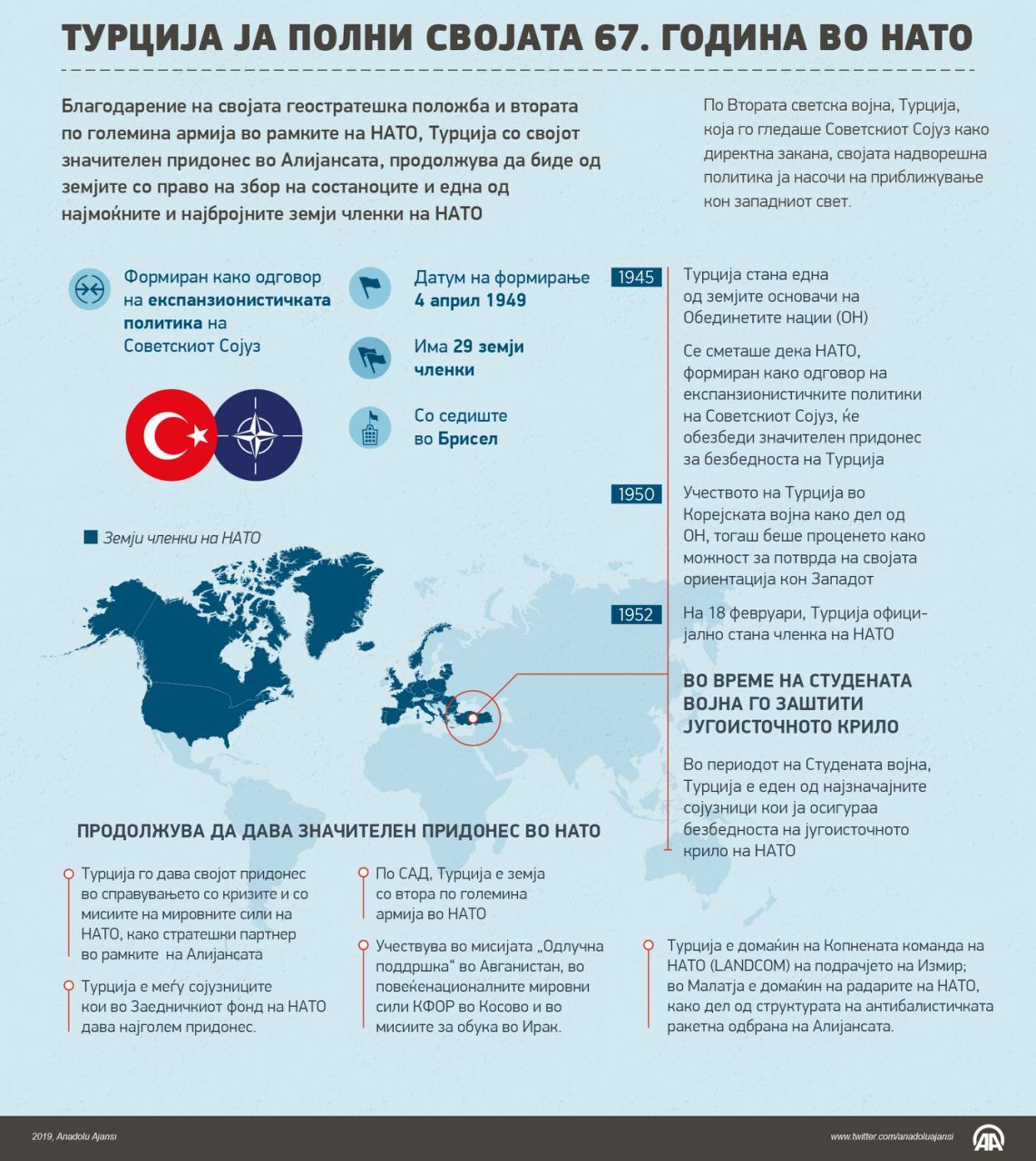 Благодарение на својата геостратешка положба и втората по големина армија во рамките на НАТО, Турција, покрај својот значителен придонес во Алијансата, продолжува да биде една од земјите која има право на збор на состаноците и една од најмоќните и најбројните земји членки во НАТО.17 Февруари 2019•Ажурирај: 17 Февруари 2019