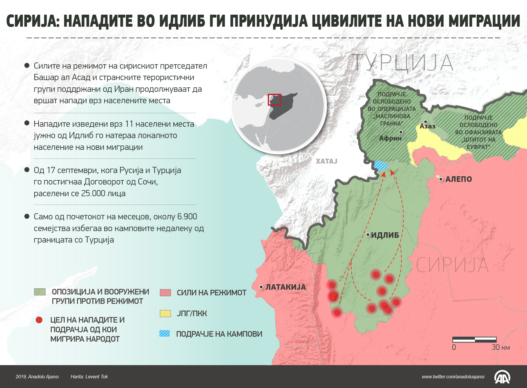 - Интензивните напади на Асадовиот режим и странските терористички групи поддржувани од Иран, кои беа изведени врз Кан Шејхун и Маратинуман, две поголеми населени места во Идлиб, доведоа до нови миграции кон камповите во близина на границата со Турција.21 Февруари 2019•Ажурирај: 21 Февруари 2019