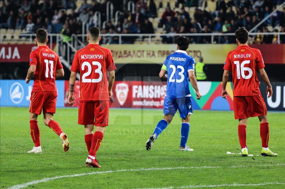 СКОПЈЕ (АА) - Во третиот натпревар од Лигата на нации, репрезентацијата на Македонија ја постигна и третата победа. Вечерва на арената „Филип Втори“ во Скопје беше совладана репрезентацијата на Лихтенштајн со резултат 4:1. ( BUNJAMIN KURTISHI - Агенција Анадолија )