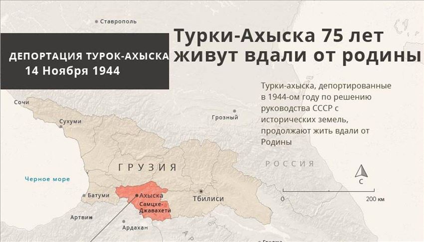 В ноябре 1944 года по приказу Сталина в Центральную Азию депортировали 86 тысяч турок-ахыска. 17 тысяч из них погибли, остальные осели в Казахстане, Кыргызстане и Узбекистане.