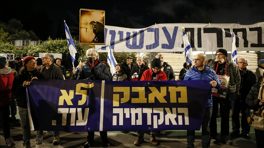 Протестующие собрались на площадях вдоль маршрутов к музею, неся транспаранты с надписями «Помни прошлое, поймай преступника», «Свободу Палестине», «Остановите геноцид», «Евреи против геноцида», «Иудаизм отвергает сионизм» и «Герцог, тебе здесь не рады».