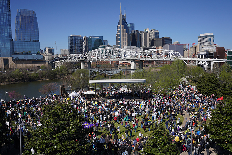 В столице страны, Вашингтоне протестующие, пришедшие к месту сбора ранним утром, прошли маршем под названием «Марш на Вашингтон» от Мемориального моста до Монумента Вашингтона. Тысячи демонстрантов с плакатами и лозунгами раскритиковали администрацию Трампа, особенно за удары по Ирану, наносимые совместно с Израилем с 28 февраля.