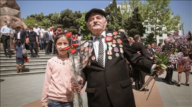 По всей республике проходят церемонии возложения цветов к памятникам, мемориальным доскам, монументам героев войны.