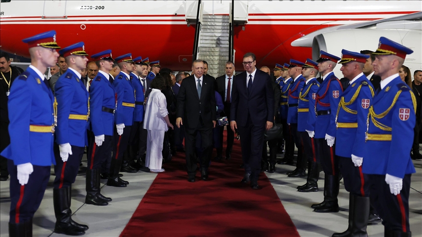 Главу государства встретили президент Сербии Александр Вучич и турецкие и сербские дипломаты