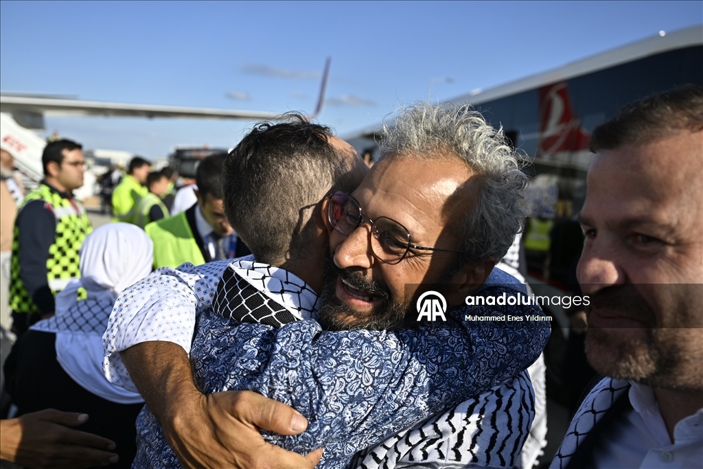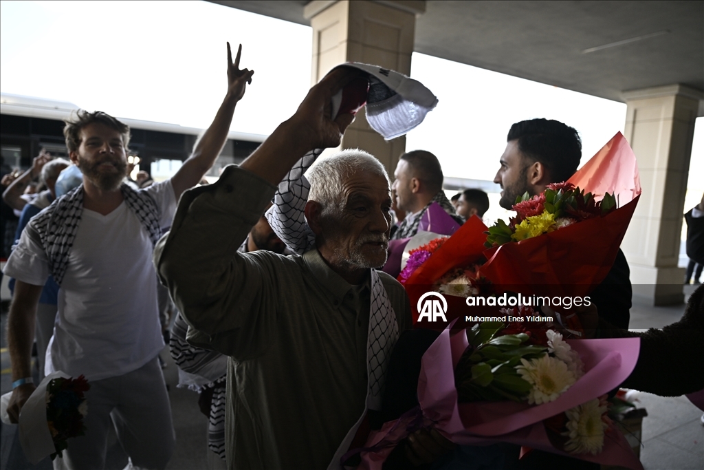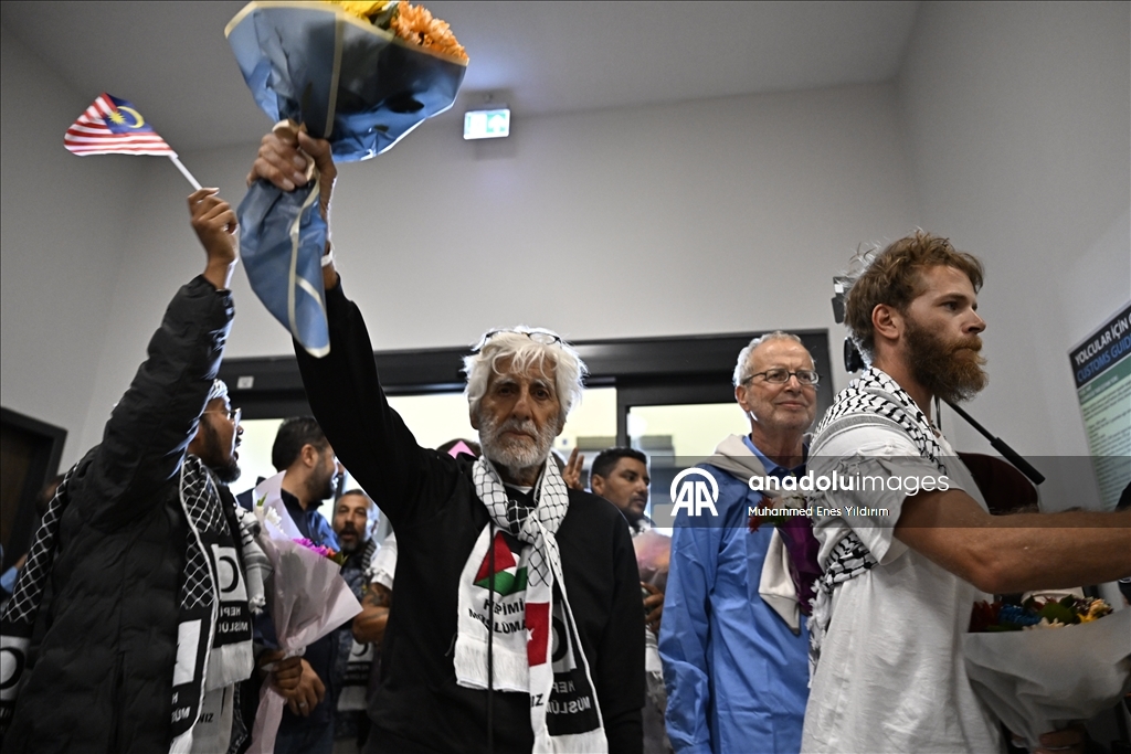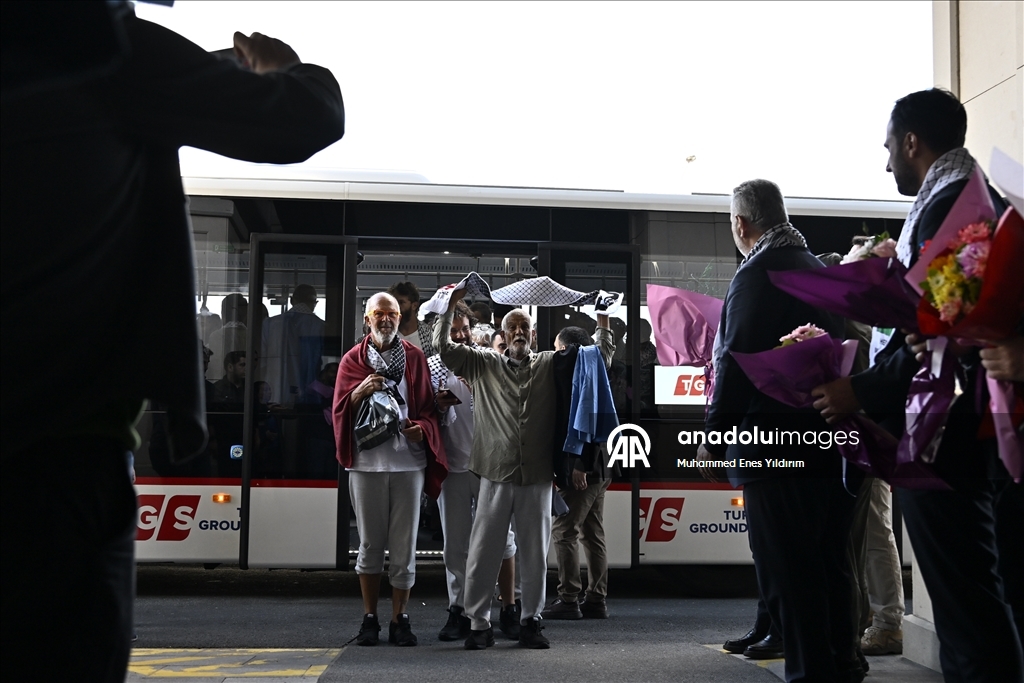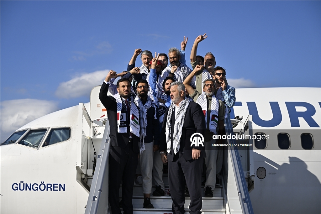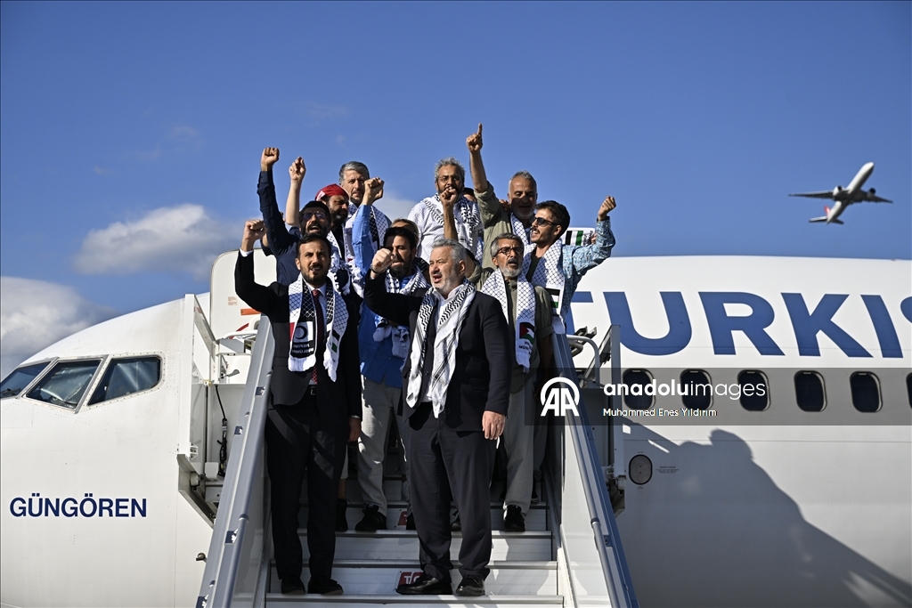Самолет авиакомпании Turkish Airlines (THY) с активистами флотилии Global Sumud, подвергшейся атаке и задержаниям со стороны израильских сил в международных водах, приземлился в аэропорту Стамбула.