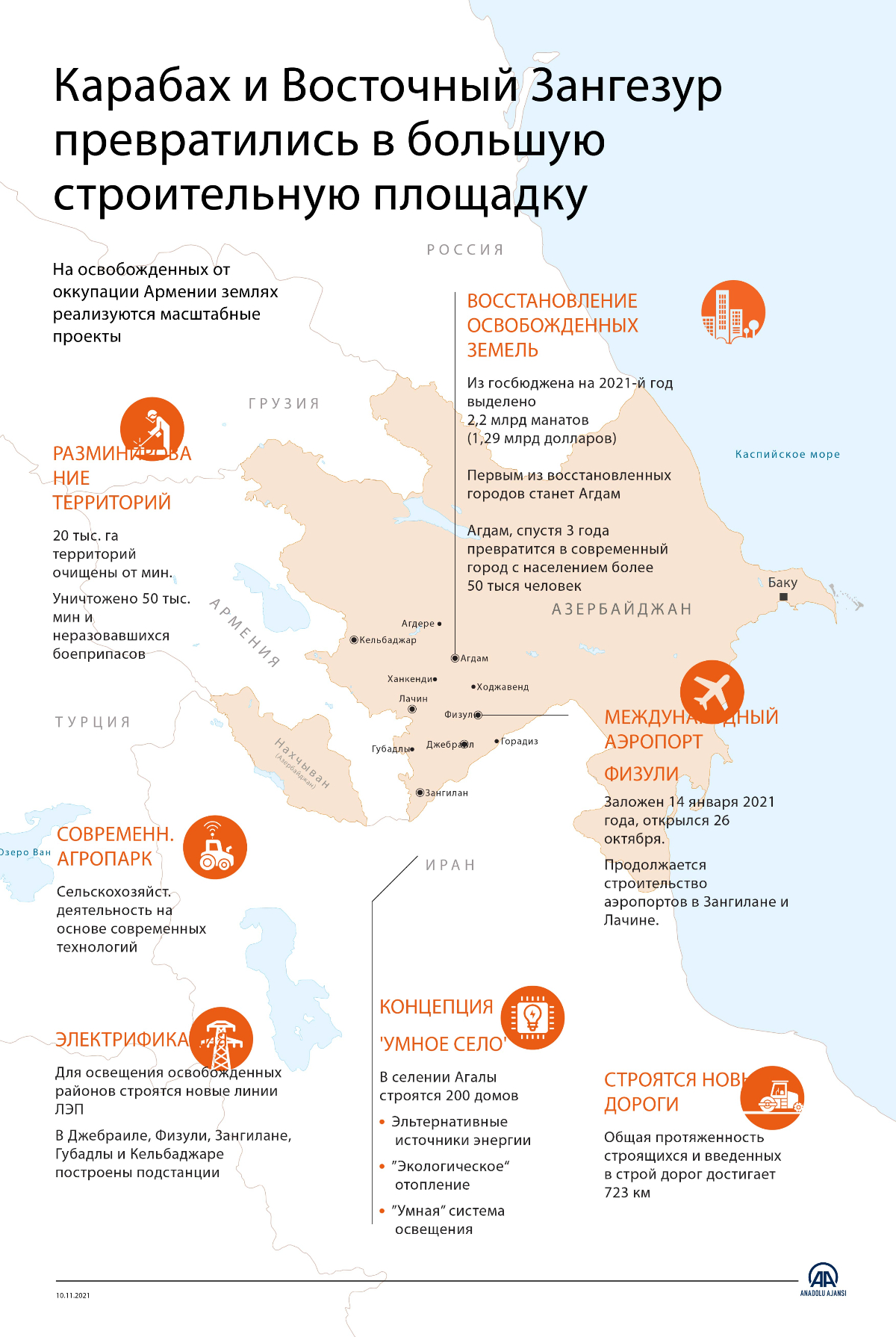 Сегодня Карабах превратился в регион, где строятся «умные города» и «умные села», аэропорты, автомобильные и железные дороги, обрабатываются сельхозугодья