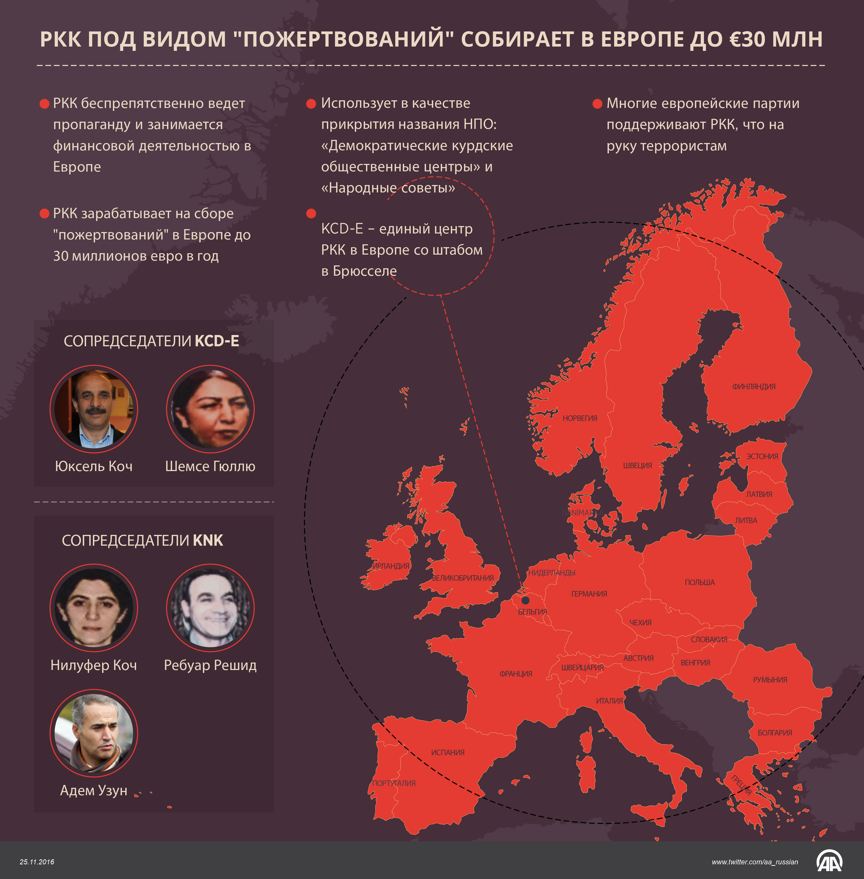 Несмотря на то, что РКК признана Евросоюзом террористической организацией, эта группировка беспрепятственно ведет пропаганду и занимается финансовой деятельностью на территории Европейского континента. Евросоюз внес РКК в список террористических организаций в мае 2002 года25 Ноябрь 2016•Обновить: 25 Ноябрь 2016