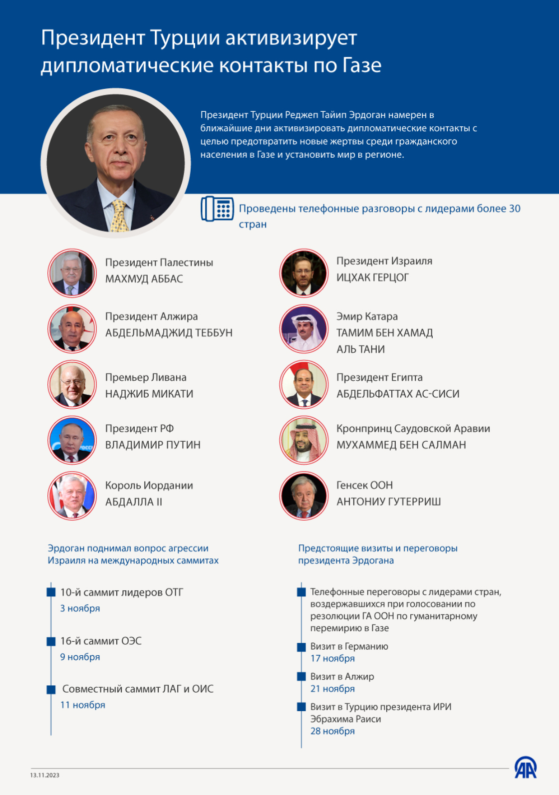Президент Турции Реджеп Тайип Эрдоган намерен в ближайшие дни активизировать дипломатические контакты с целью предотвратить новые жертвы среди гражданского населения в Газе и установить мир в регионе