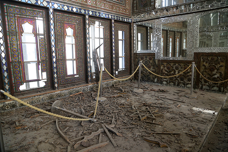 Зеркальный зал, спроектированный архитектором Абул Хасаном Исфахани и известный своим мастерством, также пострадал в результате атак.