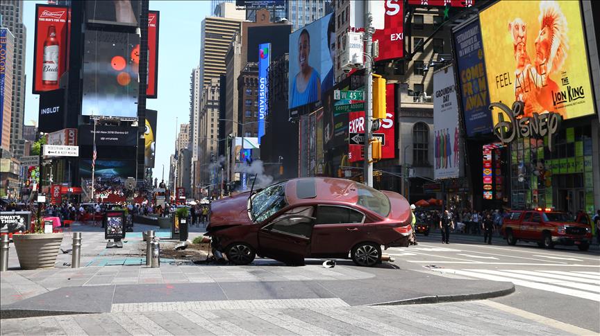 Gazetari i AA-së, i cili ka qenë dëshmitar i ngjarjes së ndodhur në këndin mes Rrugës së 45-të dhe Broadway, kishte njoftuar se automjeti në shpejtësi të madhe së pari është përplasur në barrierën në trotuar, ndërsa më pas automjetin e ka kapluar zjarri, me çka kanë ndërhyrë zjarrfikësit të cilët kishin ardhur në vendin e ngjarjes.