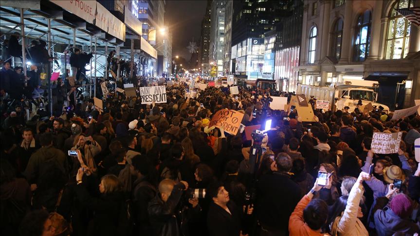 SHKUP (AA) - Mijëra njerëz protestojnë në ditën e tretë në Miami, New York, Los Angeles dhe qytete të tjera amerikane, për shkak të zgjedhjes së Donald Trump për president, raporton Anadolu Agency (AA).