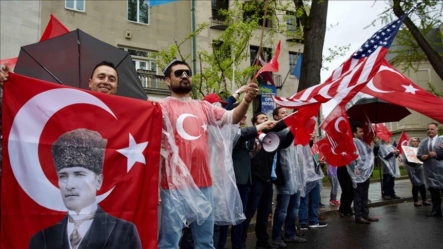 Qindra turq u mblodhën përpara rezidencës së Ambasadës turke në Washington, në aktivitetin e organizuar nën udhëheqjen e Komitetit Drejtues Kombëtar Turk-Amerikan (TASC) dhe të mbështetur nga institucionet si Qendra e Dijanetit në Amerikë (DCA).