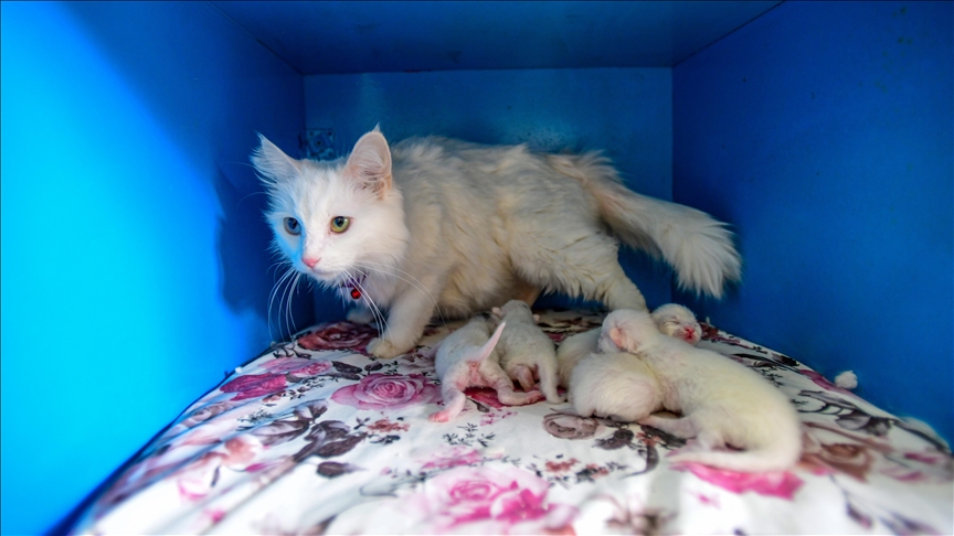 "Su", një nga macet e llojit "Van" që është nën mbrojtje në Qendrën e Kërkimit dhe Aplikimit të Maceve Van të Universitetit "Yüzüncü Yıl" dhe u zgjodh e para në konkursin ndërkombëtar, ka lindur pesë kotele, raporton Anadolu.