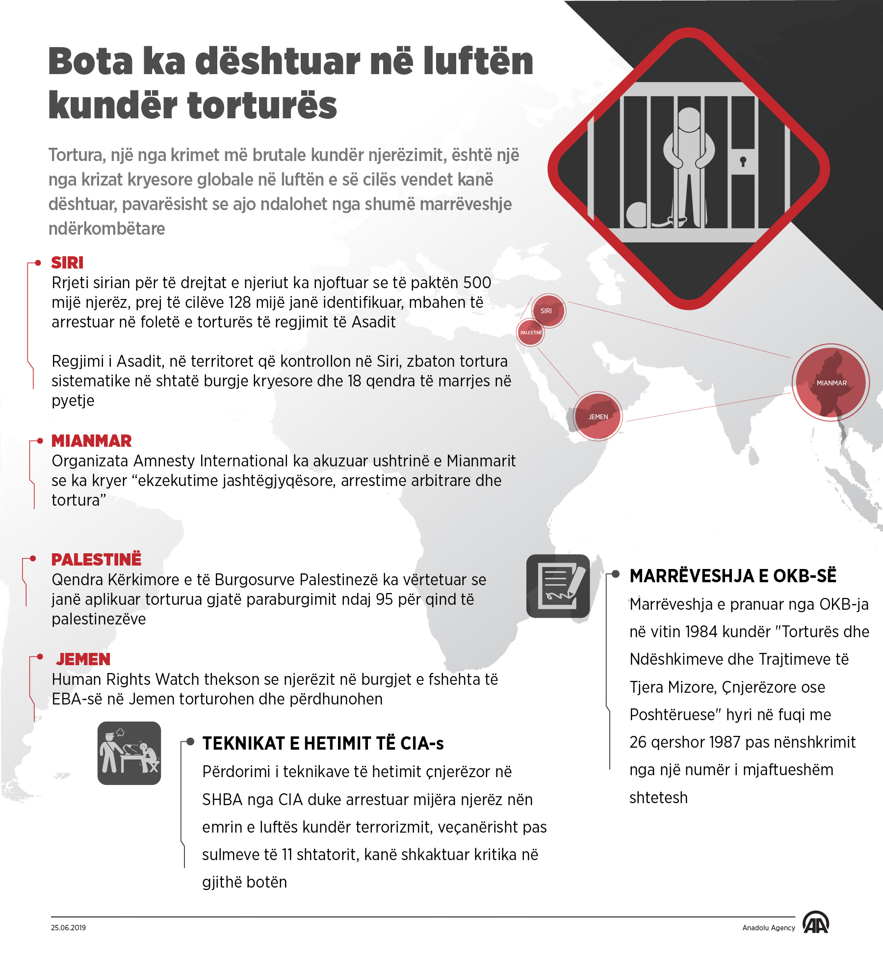 Tortura, një nga krimet më brutale kundër njerëzimit, është një nga krizat kryesore globale në luftën e së cilës vendet kanë dështuar, pavarësisht se ajo ndalohet nga shumë marrëveshje ndërkombëtare25 Qershor 2019•Përditësim: 25 Qershor 2019