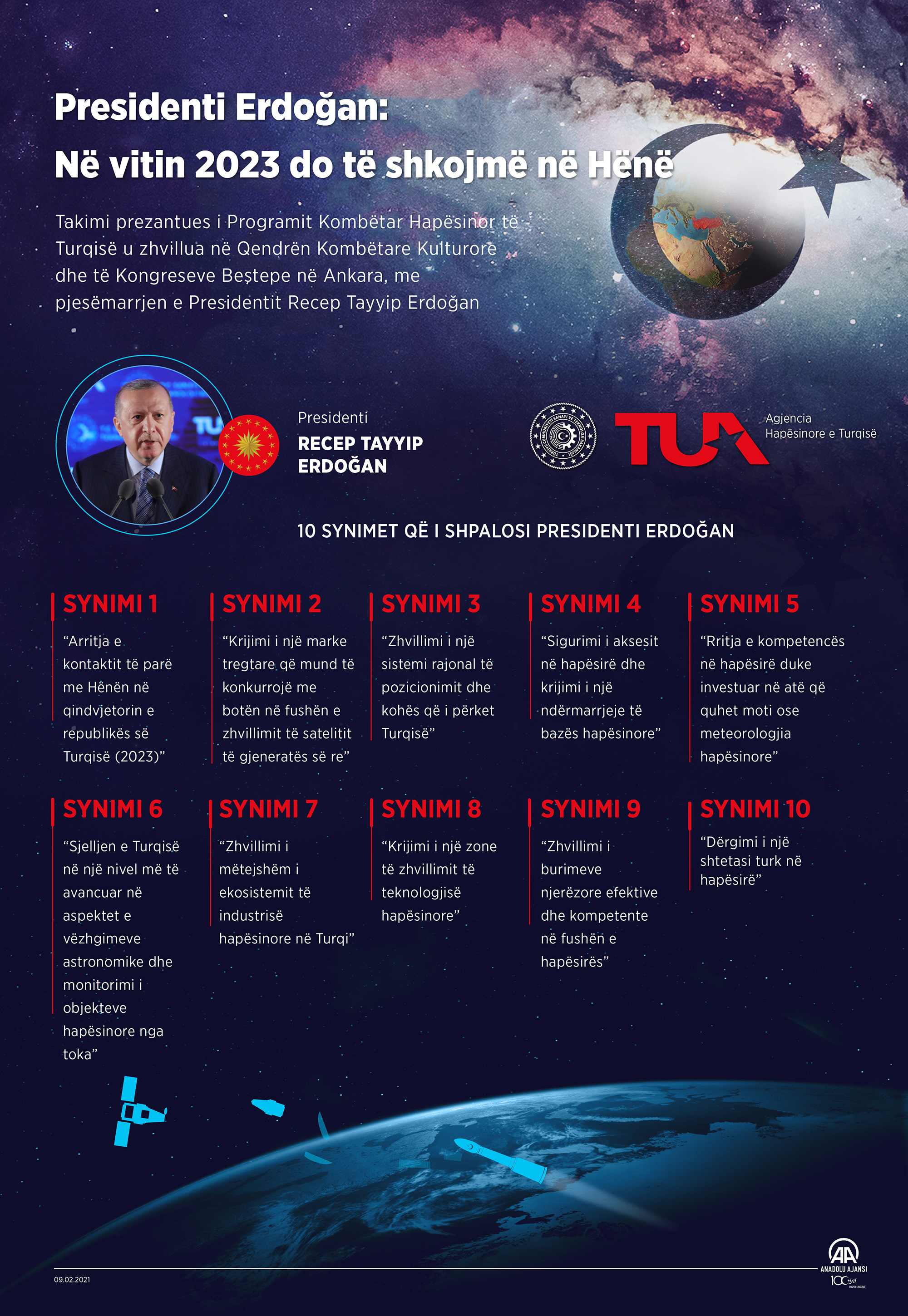 Në takimin prezantues të mbajtur në Ankara, presidenti Erdoğan tha se "programi kombëtar hapësinor do ta çojë vendin në një ligë më të lartë në garën globale të hapësirës"