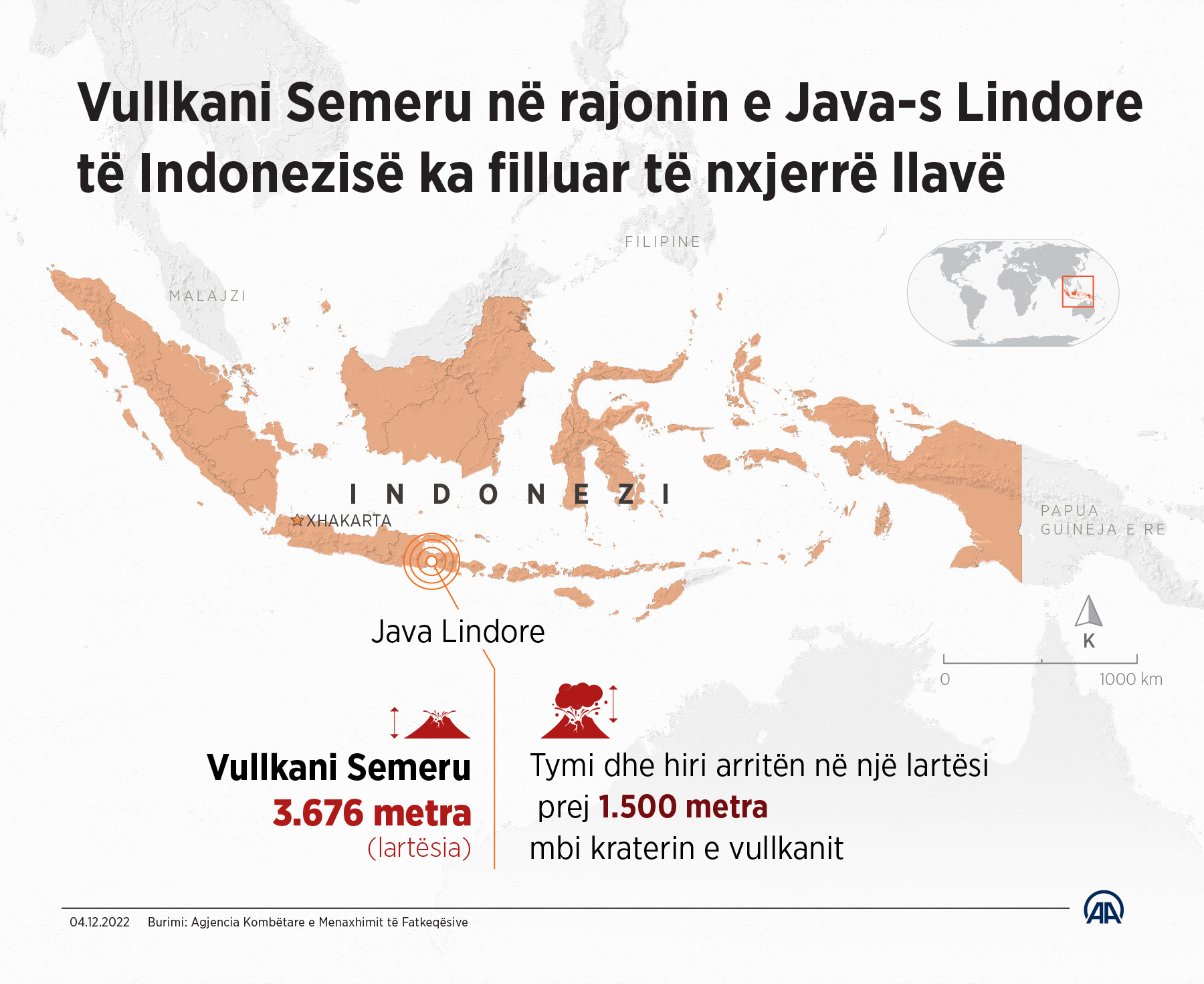 Shpërthen vullkani Semeru në Indonezi