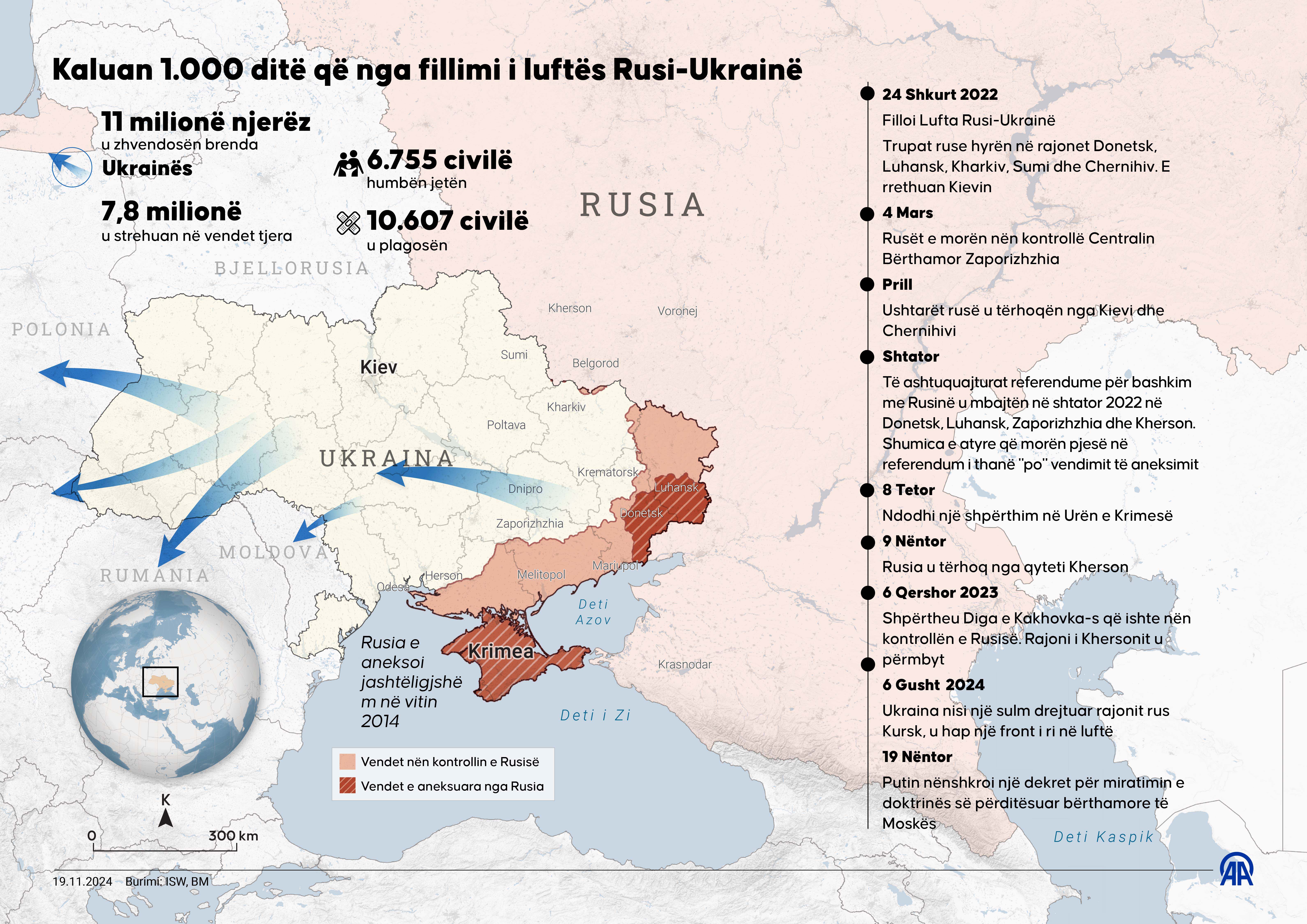Kaluan 1.000 ditë që nga fillimi i luftës Rusi-Ukrainë