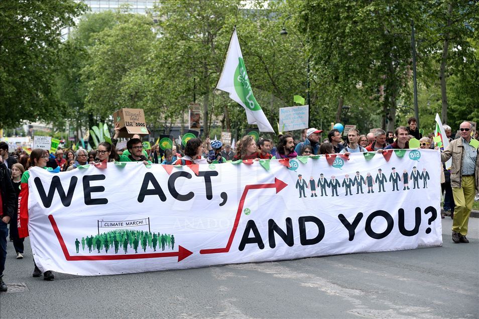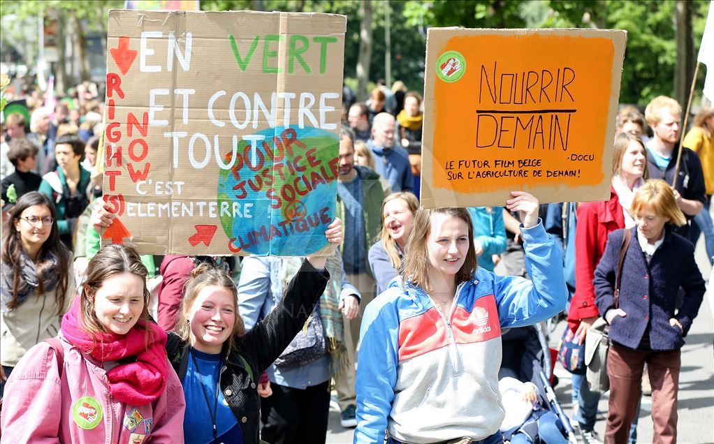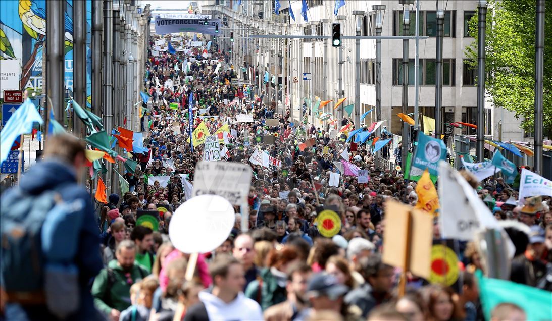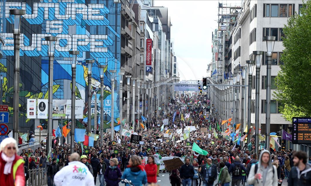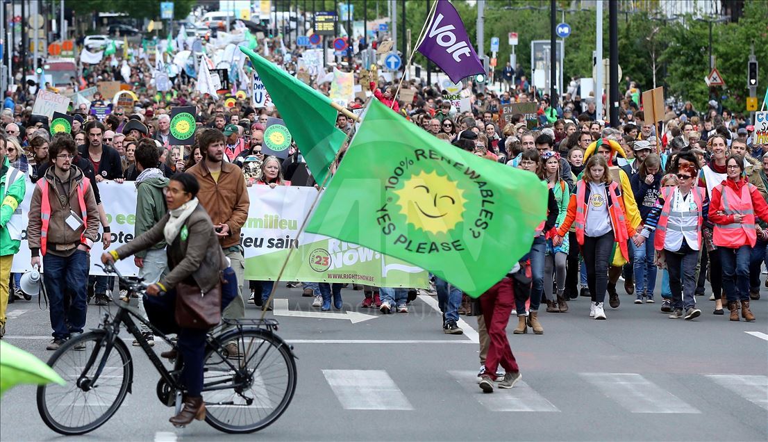 BRUKSEL (AA) - Mijëra ambientalistë në kryeqytetin e Belgjikës, Bruksel, organizuan protestë për të tërhequr vëmendjen në ngrohjen globale dhe ndryshimet klimatike. Rreth 15 mijë ambientalistë të mbledhur para stacionit verior të trenit, brohoritën me slogane kundër politikave që kanë shkaktuar ngrohje globale. ( Dursun Aydemir - Anadolu Agency )Dursun Aydemir