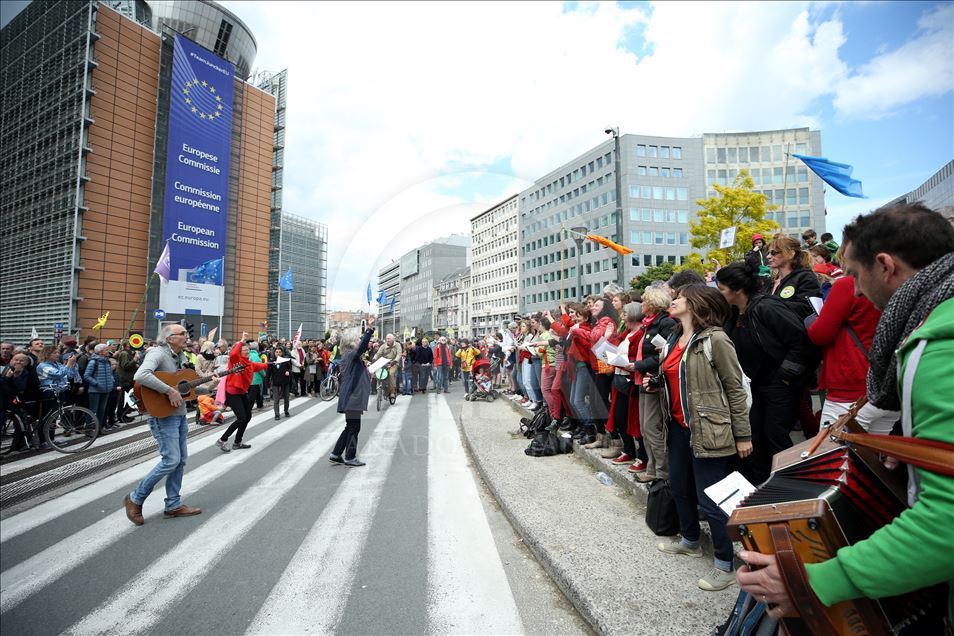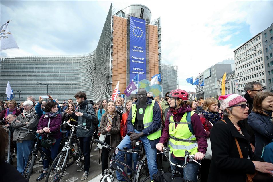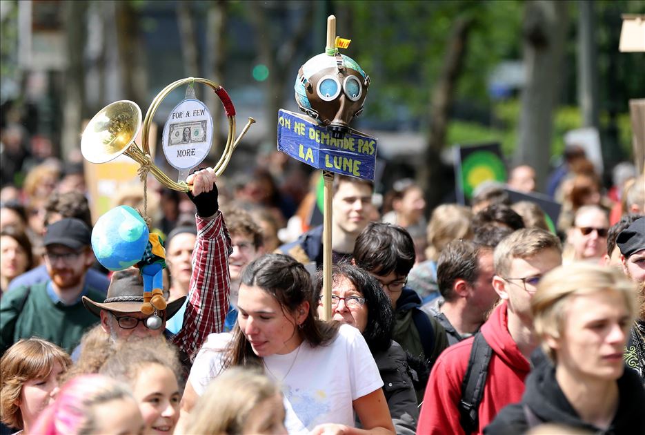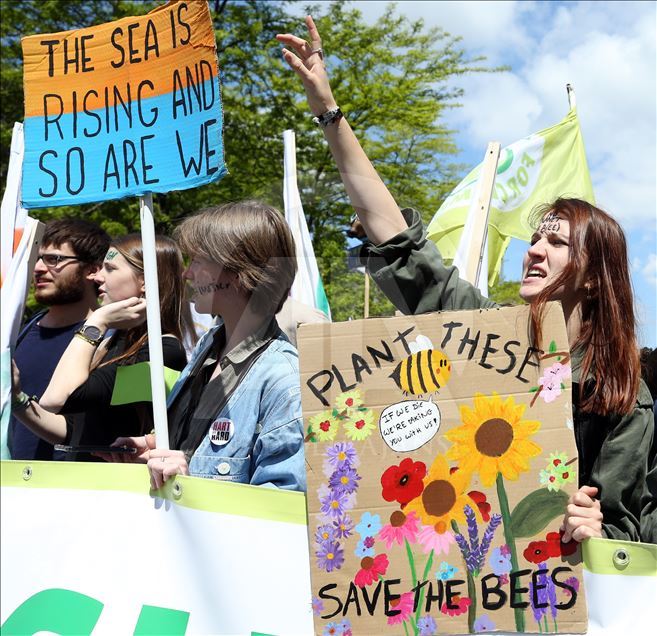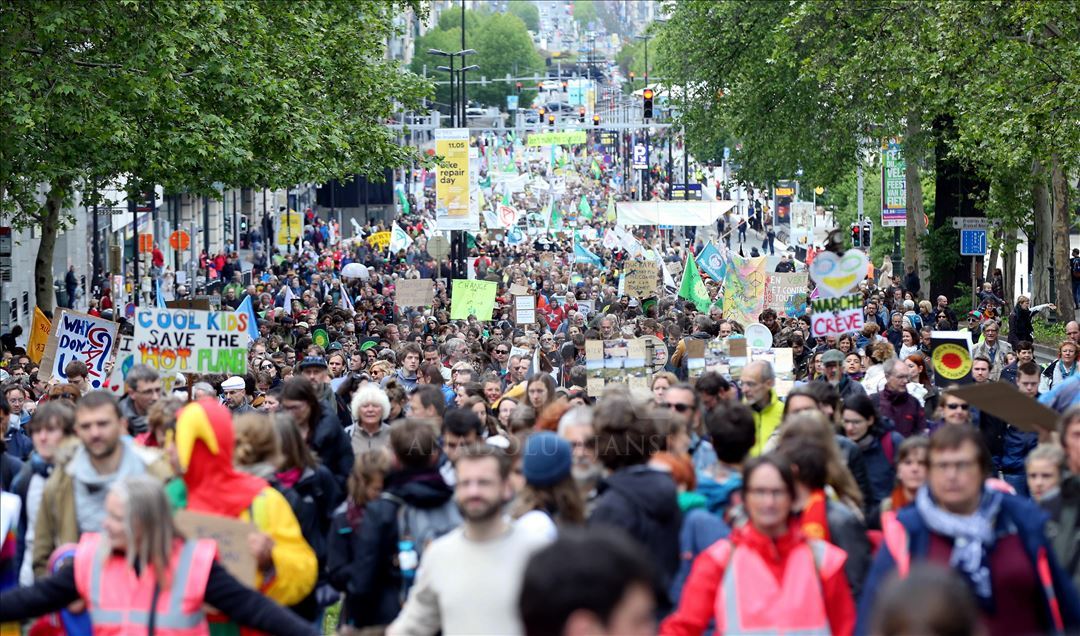BRUKSEL (AA) - Mijëra ambientalistë në kryeqytetin e Belgjikës, Bruksel, organizuan protestë për të tërhequr vëmendjen në ngrohjen globale dhe ndryshimet klimatike. Rreth 15 mijë ambientalistë të mbledhur para stacionit verior të trenit, brohoritën me slogane kundër politikave që kanë shkaktuar ngrohje globale. ( Dursun Aydemir - Anadolu Agency )Dursun Aydemir